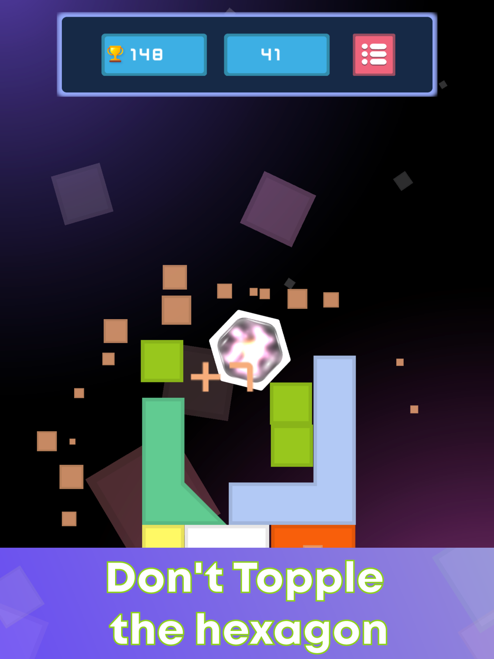 The Hexagon Drop game objective is touch to removing the blocks to make the zodiac hexagon fall down. But don't let the hexagon fall out of the tower or you will lose.