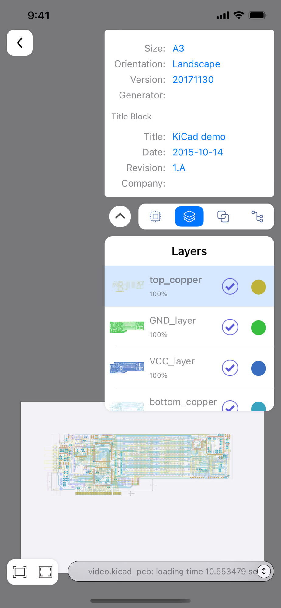 This is a lightweight APP for viewing KiCAD 3 - 7 generated pcb files in a mobile environment.