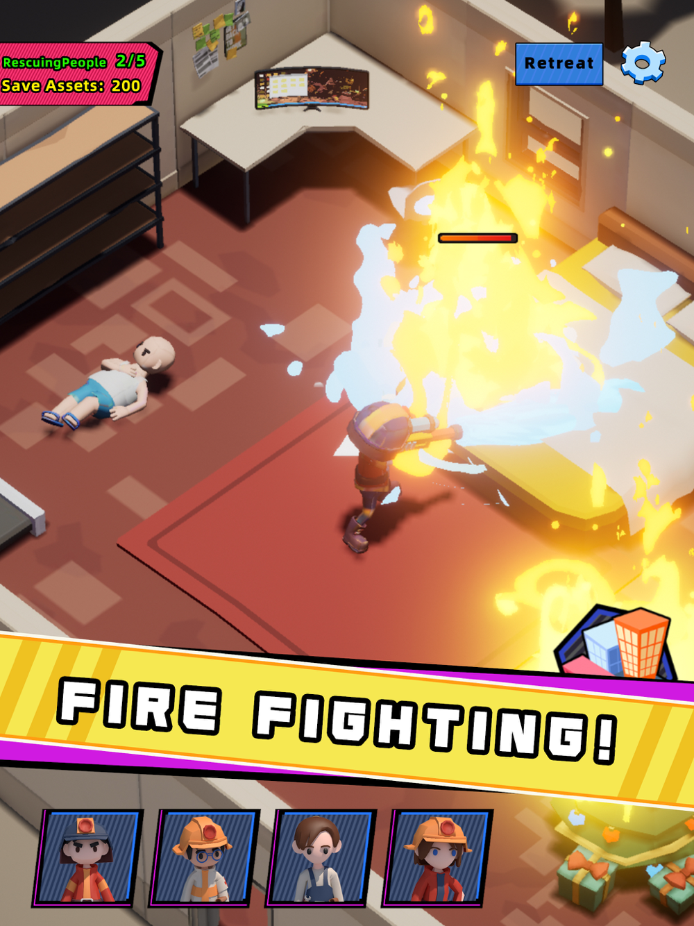 In this game, you are acting as a fire captain, you build your base, hire more firefighters, doctor, engineers to work together to handle exciting missions!