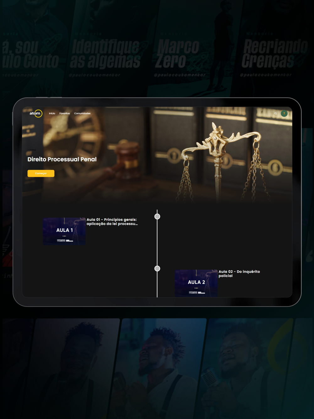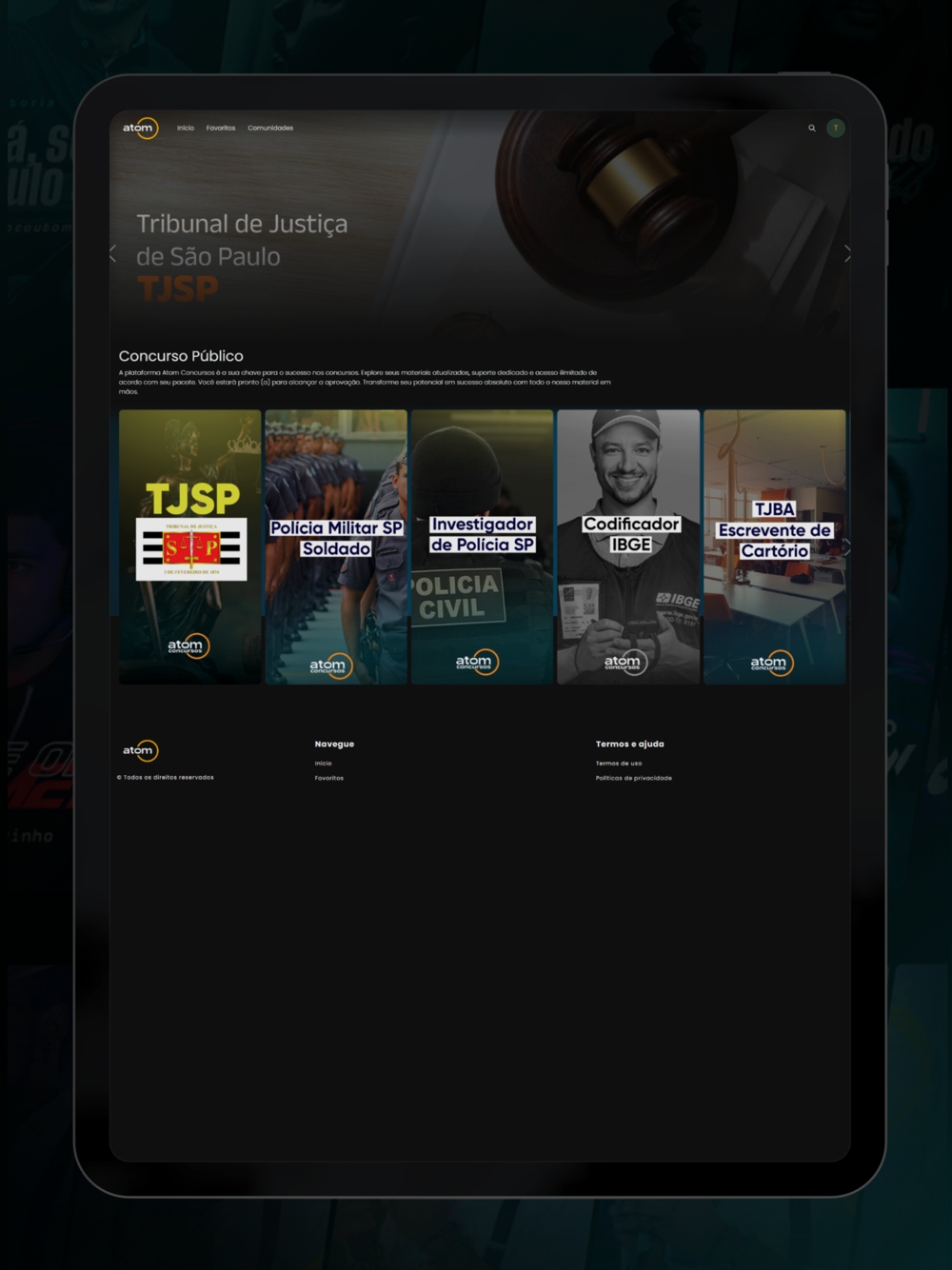 Dentro da plataforma, os assinantes e alunos acessam nosso suporte, comunidades correspondentes,
