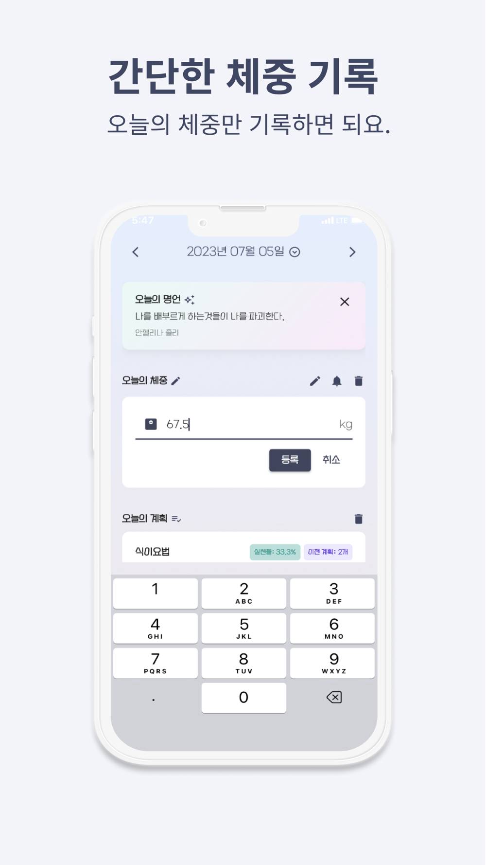 체중 기록과 다이어트 계획 실천 하는 것을 잊지 않도록