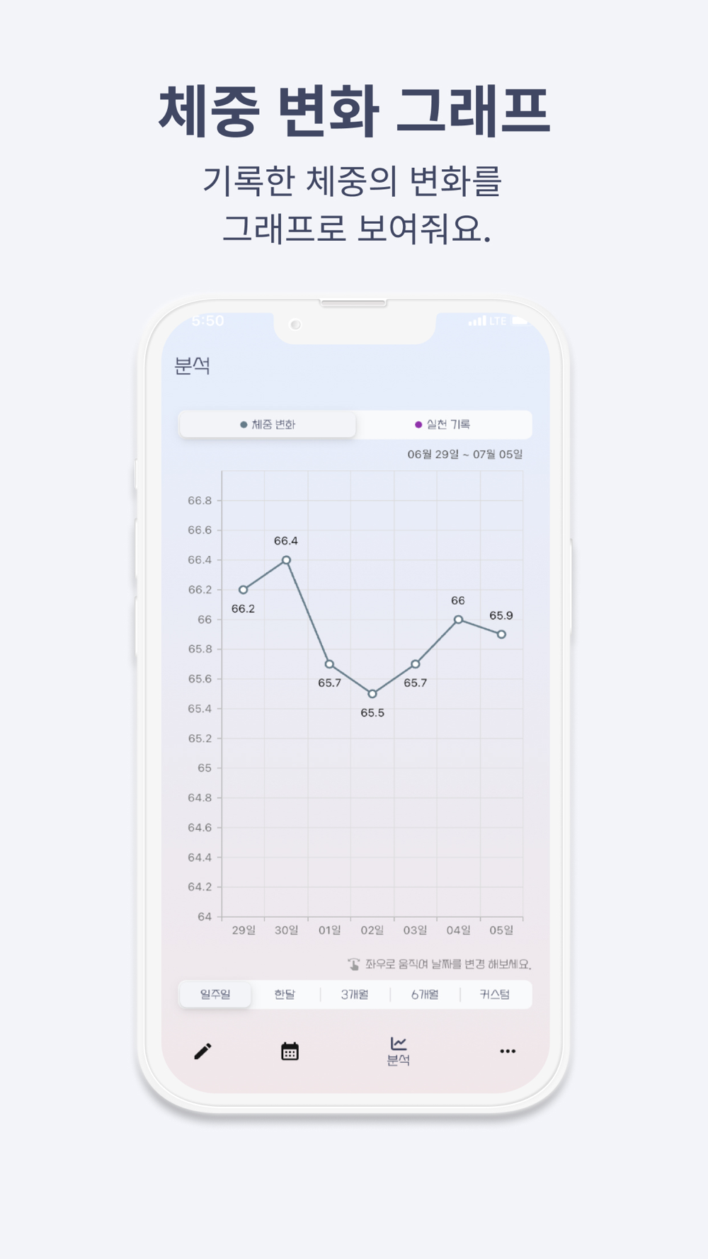 기록한 체중 데이터를 바탕으로 얼만큼의 변화가 있었는지