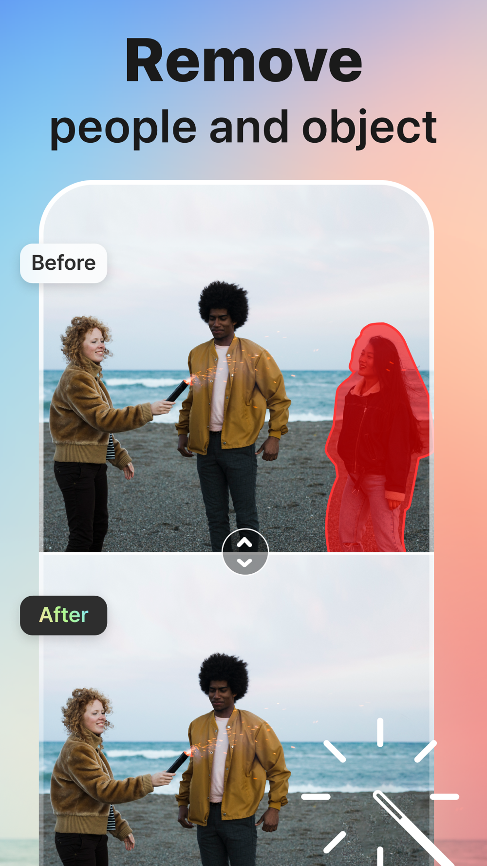 >>> Remove unwanted objects: people, pets, or blemishes from photos