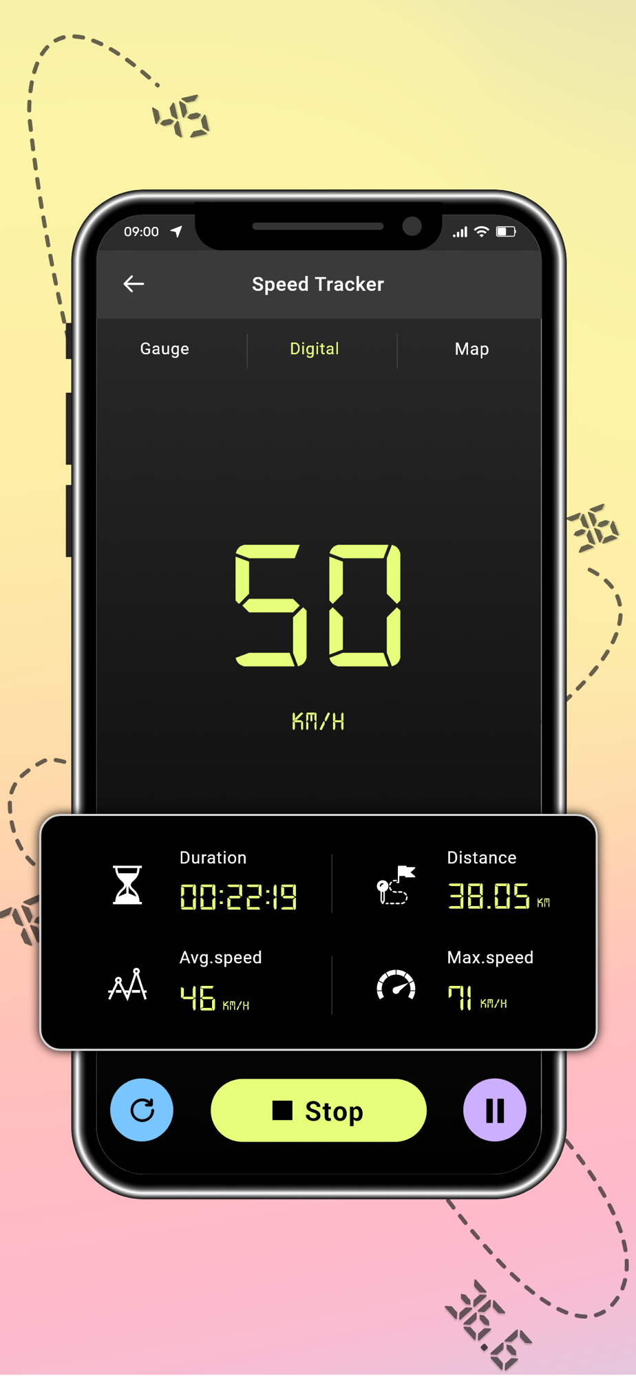 ⇒ Get precise duration stats of your journey from gps speedometer’s odometer feature