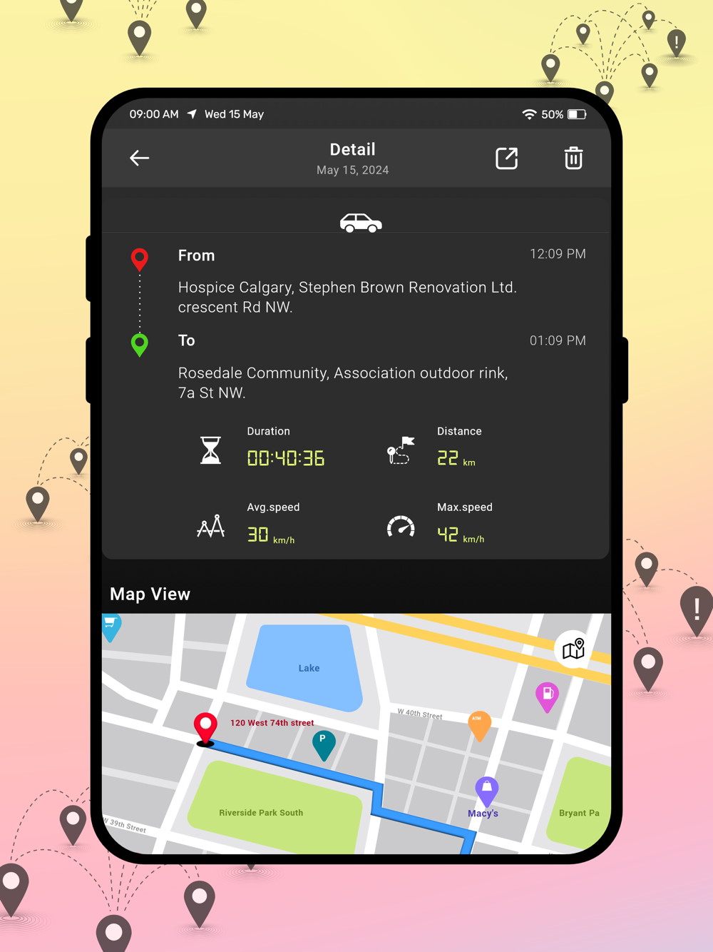 ⇒ Detailed history: Gain valuable information of your past trips & journey captured with gps speedometer, find each and every record with details in history section