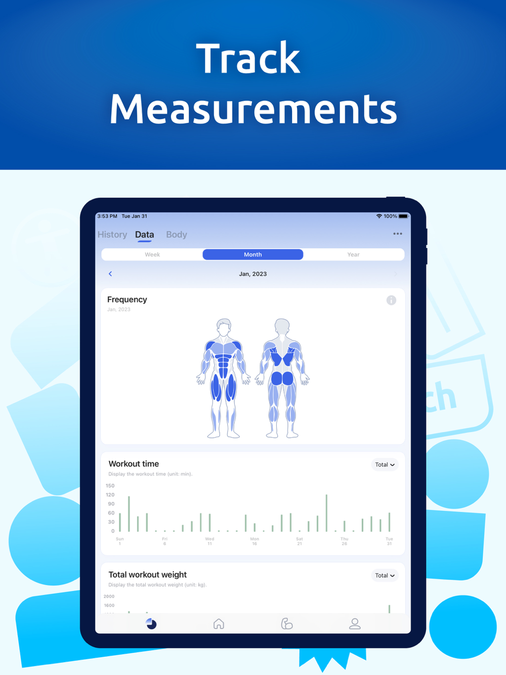• A concise and intuitive overview of training data, which can accurately track your training weight, number of sets, reps, interval time, single maximum weight, etc.