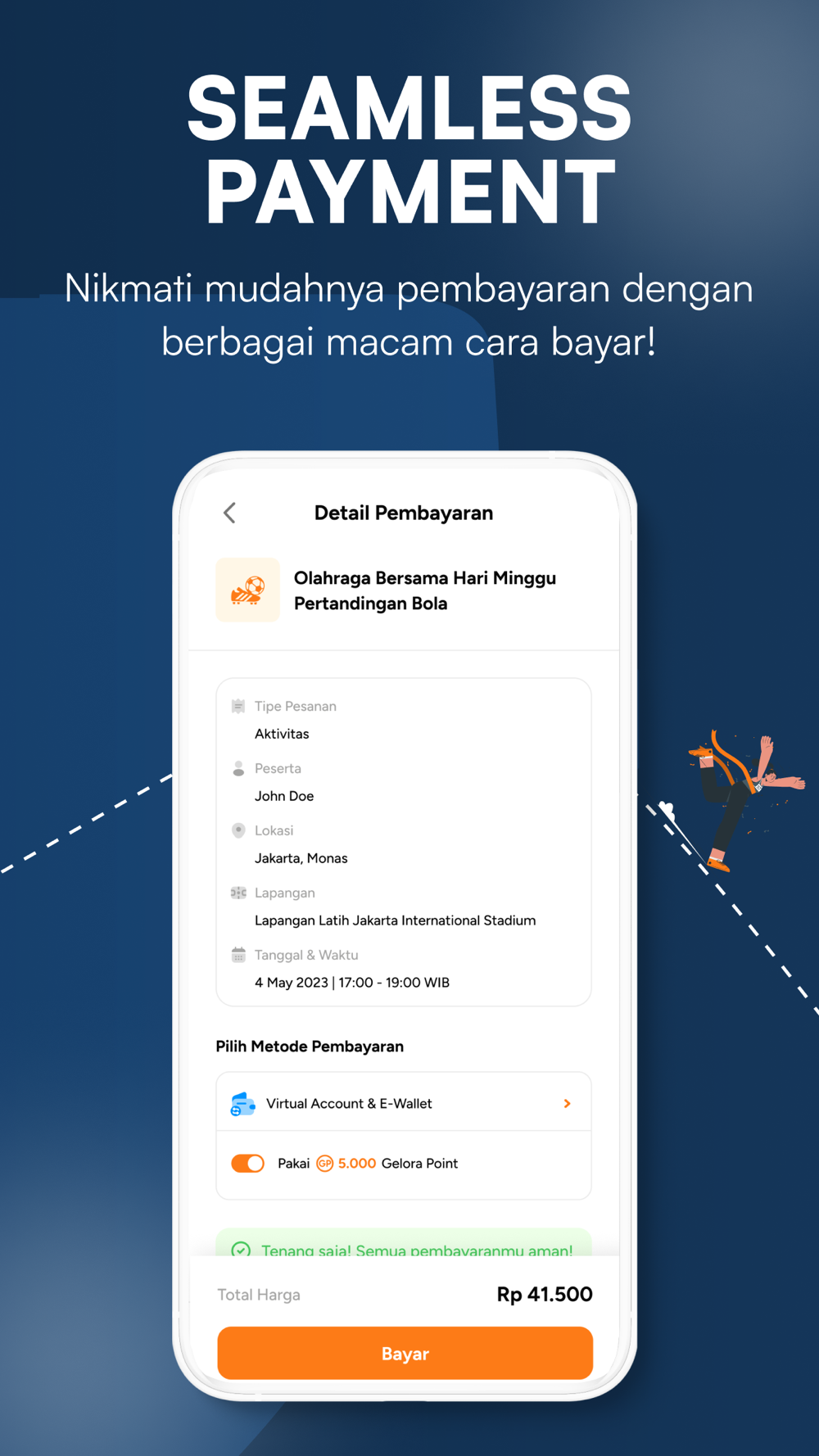 - Join Activity: Temukan beragam aktivitas olahraga sesuai dengan pilihan kamu! Kami menampilkan jenis olahraga berdasarkan pilihan favorit kamu dan lokasi terdekat.