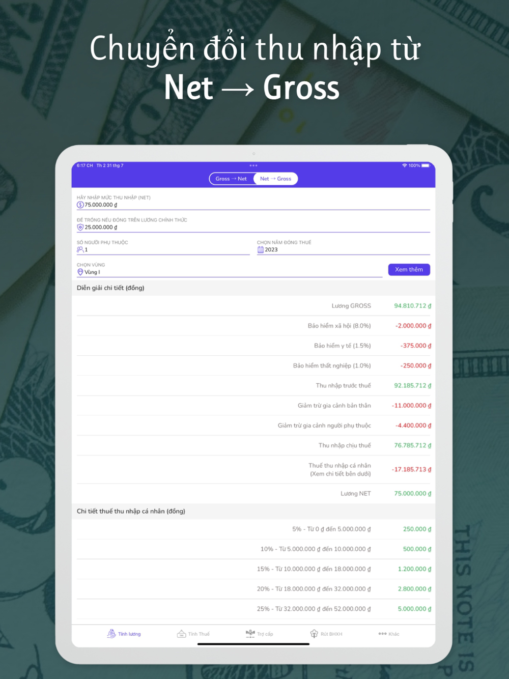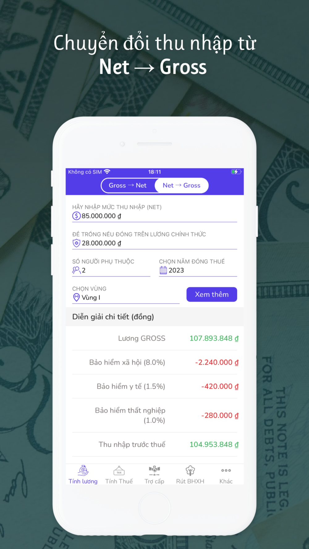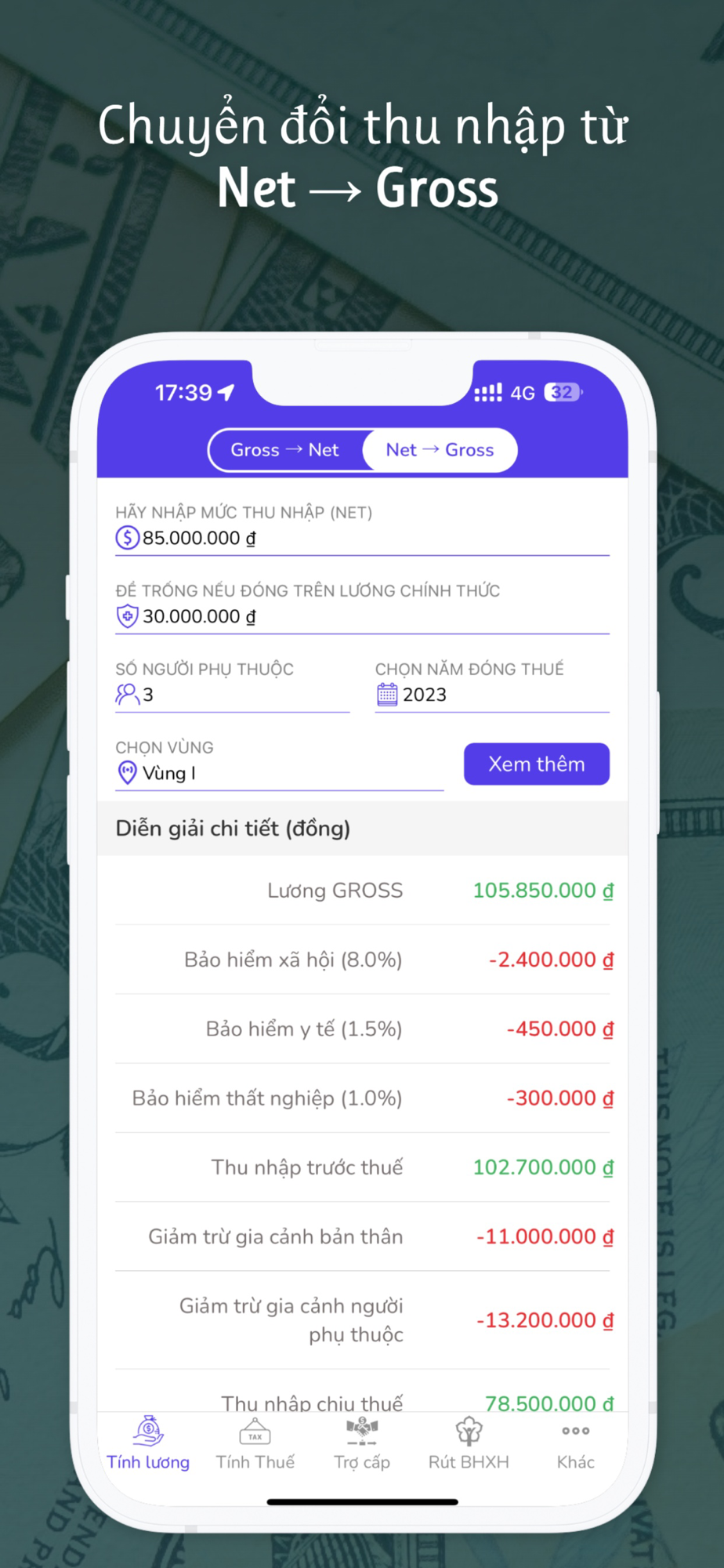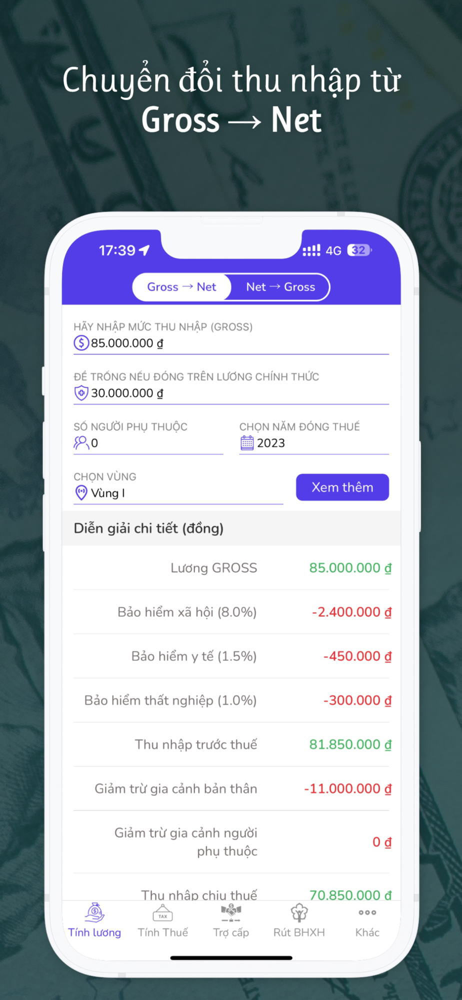 - Chuyển đổi lương gross và net