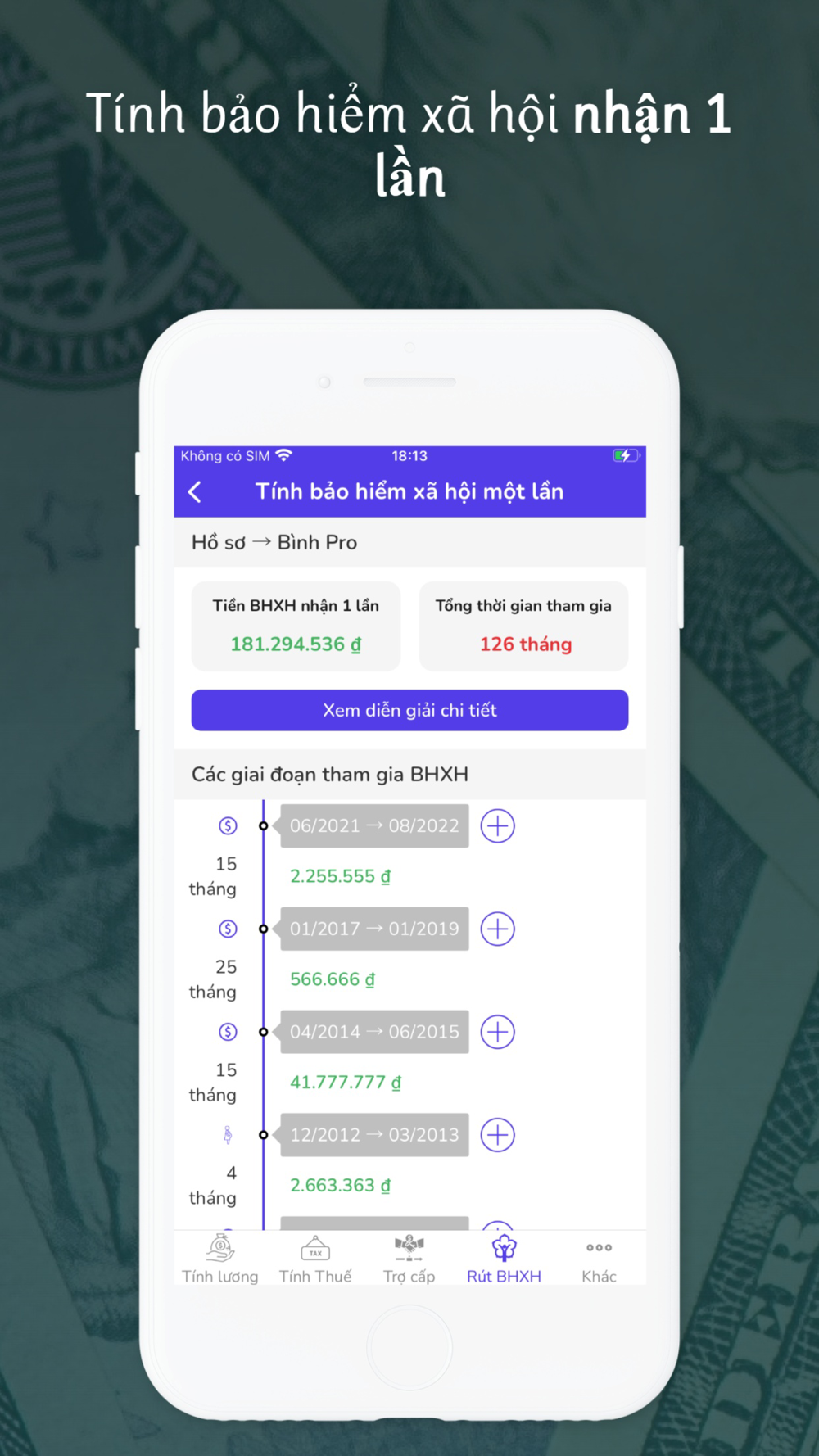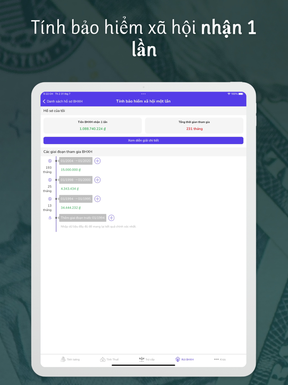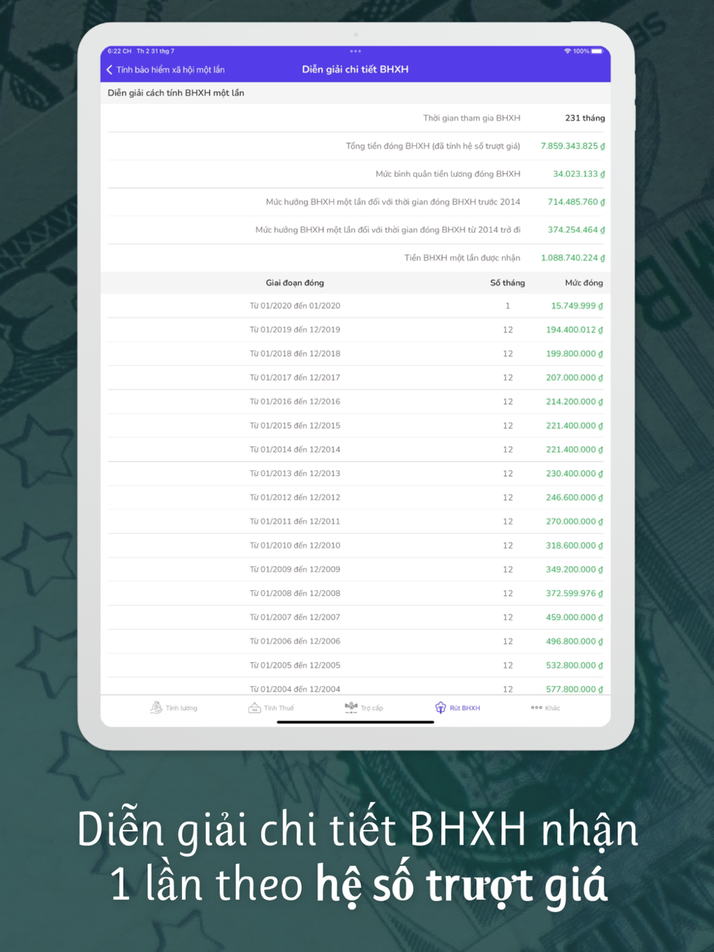 - Tính tiền nhận bảo hiểm xã hội 1 lần (đã tính trượt giá)