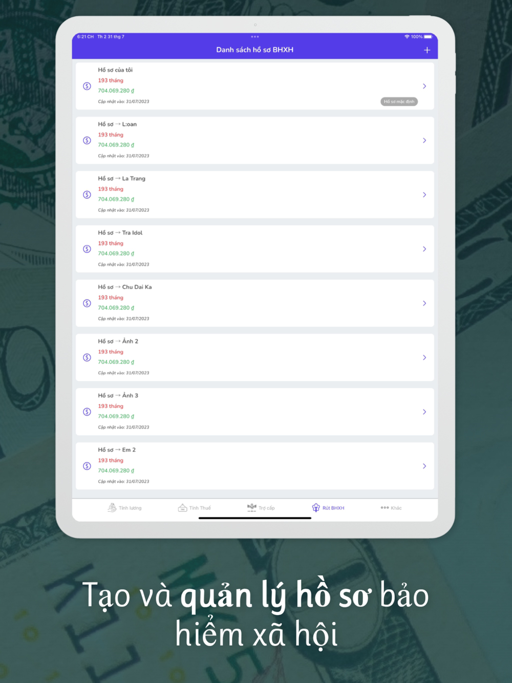 - Chi tiết bảo hiểm thất nghiệp, bảo hiểm y tế, bảo hiểm xã hội