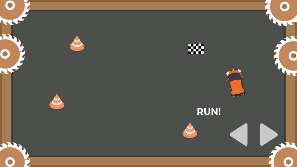 Click Run for the car to run, rotate the wheels to the sides for the car to run forward to avoid the cogs and rush to the finish line to complete the lap.
