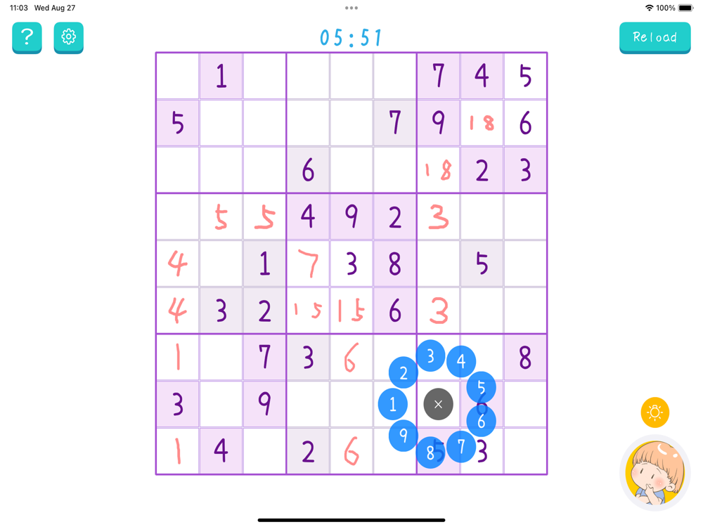 If you're not sure about a cell, you can use the handwriting feature to make a memo or jot down possible numbers.