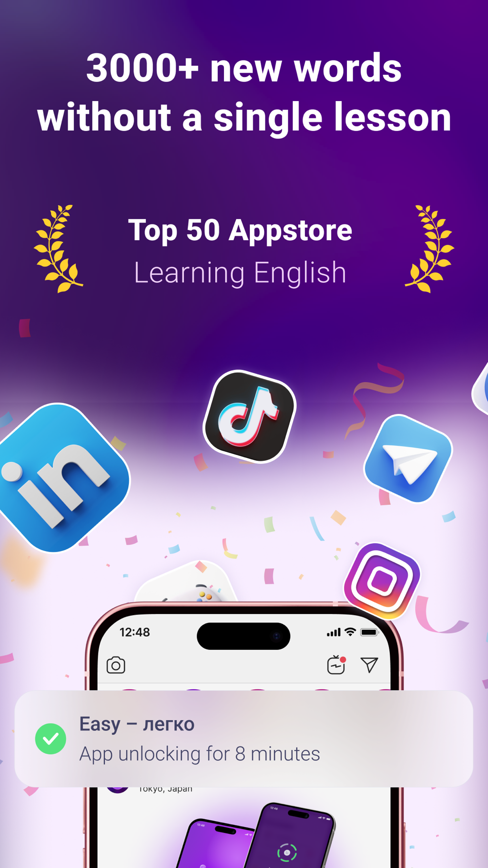 Turn your procrastination into language learning! Reward yourself by opening your favorite app.