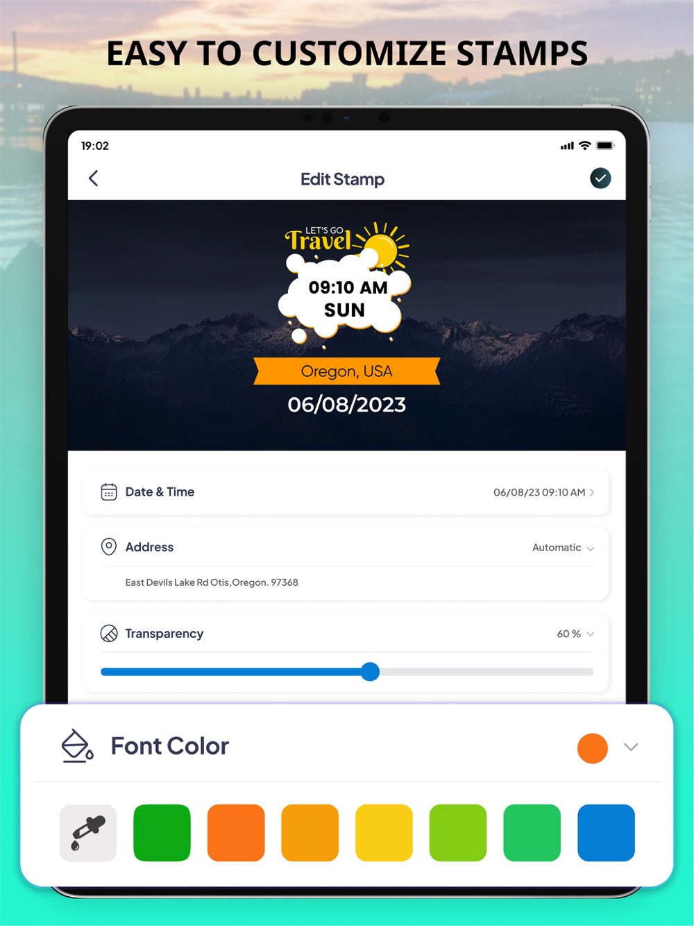 3. Customize the format & arrangement to suit your needs. Adjust the settings for the GPS map location stamp according to your needs.