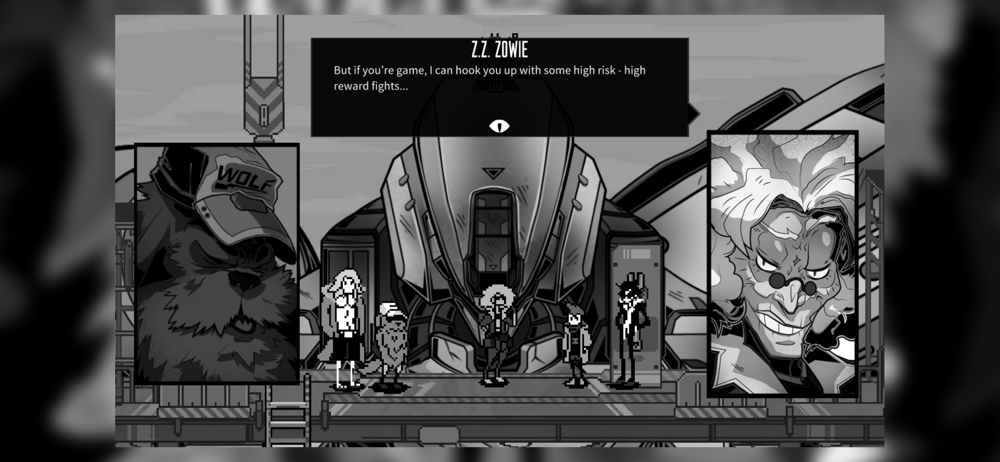 Each member of the team lends their unique experience as they prepare to outwit the best mecha opponents from around the world. Between dog-mechanic Duque, mecha pilot Knife Leopard, and jack-of-all-trades Dominic Shade, the core crew’s got just about everything covered.