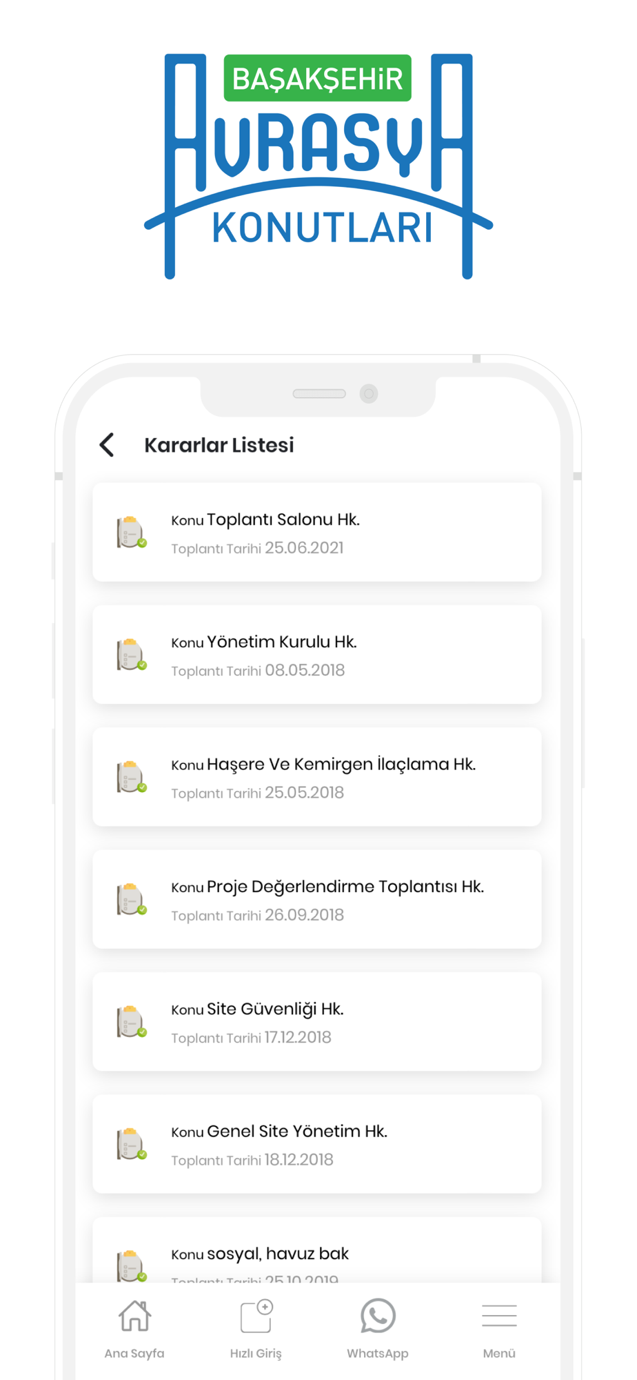 • Telefon Rehberi; Yönetici, Güvenlik Şefi, Nöbetçi Eczane vb. kişi ve yerler için iletişim bilgilerini görüntüleme,