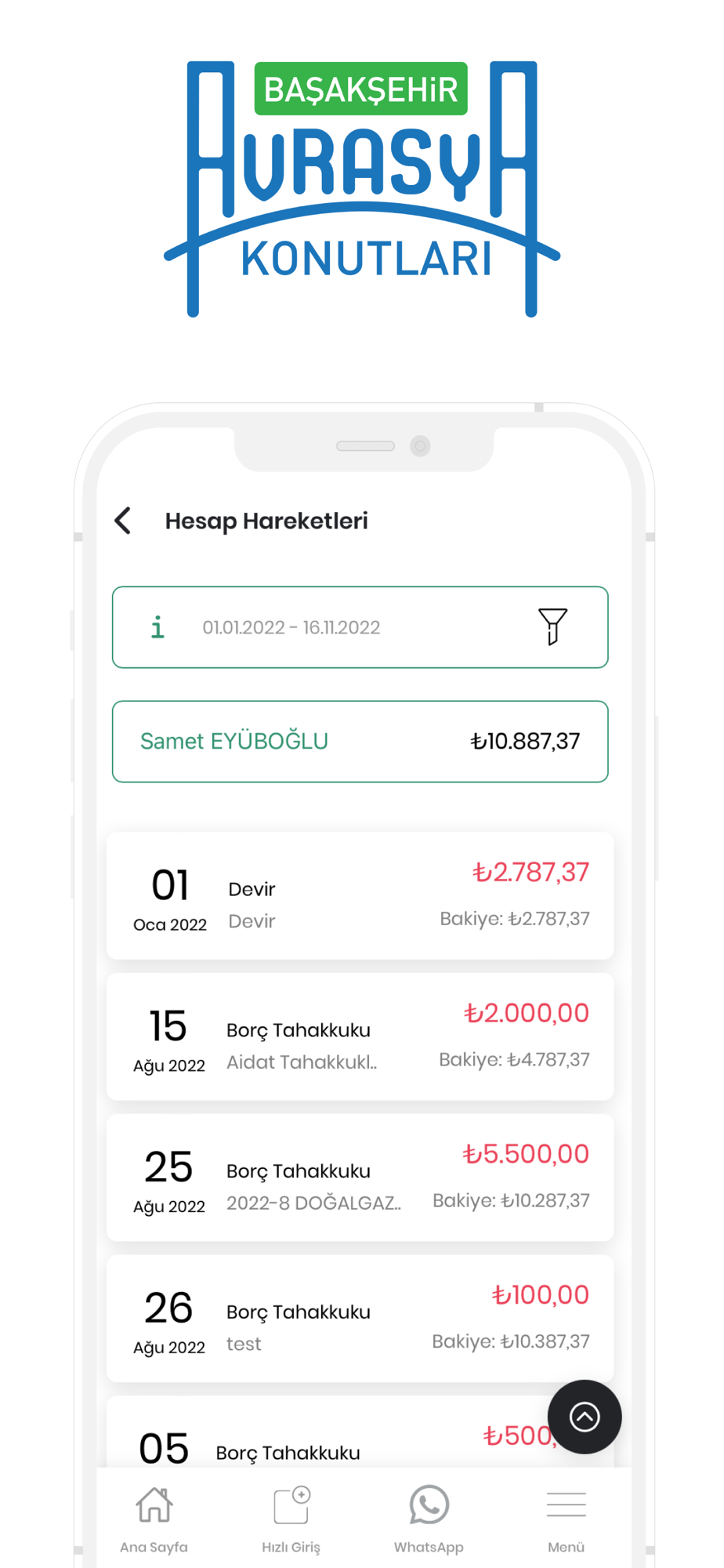 • Cari Hesap Hareketleri; bölümünüze yapılan tahakkukları , güncel borç durumunu ve geçmiş dönemde gerçekleşen ödemelerinizi görüntüleme,