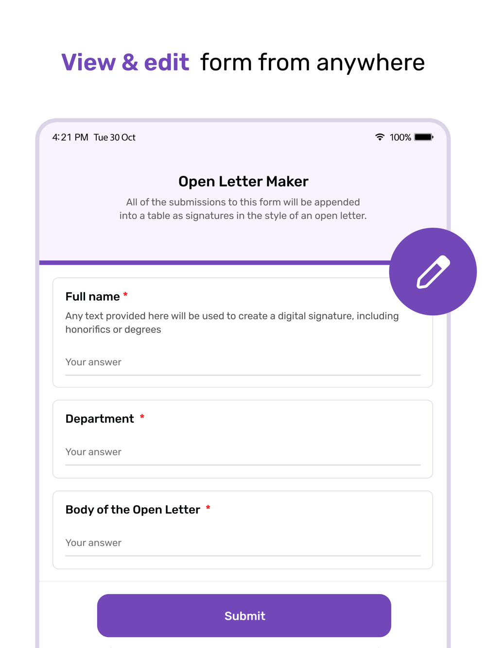 Forms created with the Form App are designed to be responsive, ensuring they look and function perfectly on different devices, from iPhones to iPads.
