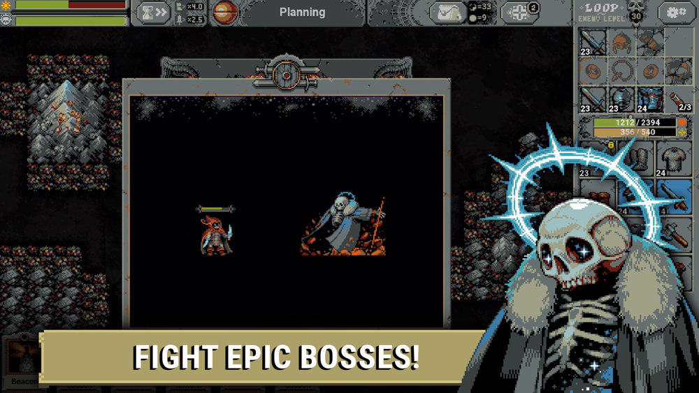 Recover and equip powerful loot for each class of hero for their battles and expand the survivors' camp to reinforce each adventure through the loop.