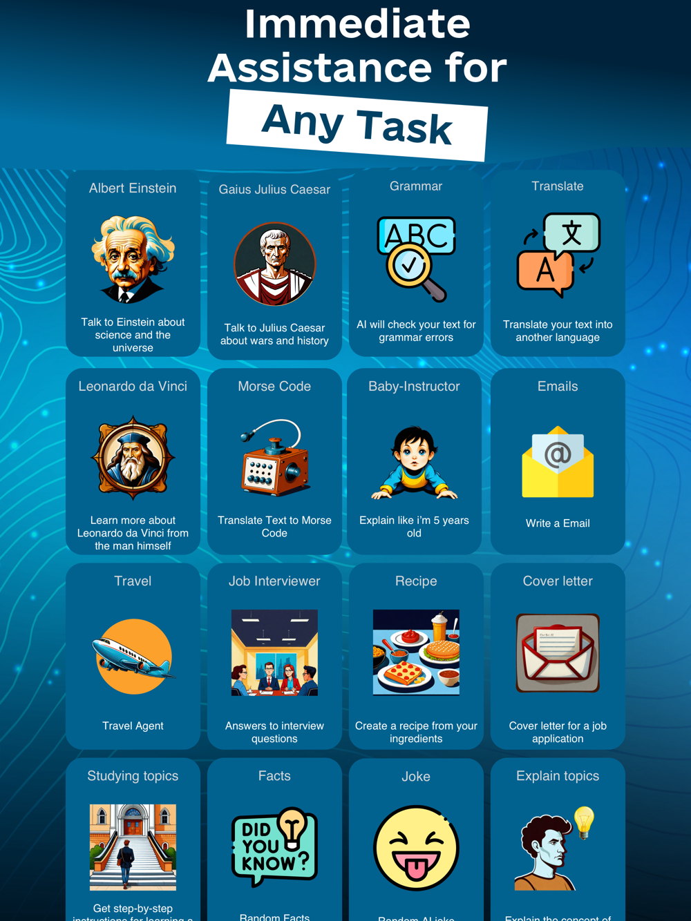 Ever wondered what it would be like to have a conversation with Julius Caesar or Leonardo da Vinci? With Chat Bot AI Assistant, you can! Engage in enlightening conversations with famous historical figures and broaden your horizons.