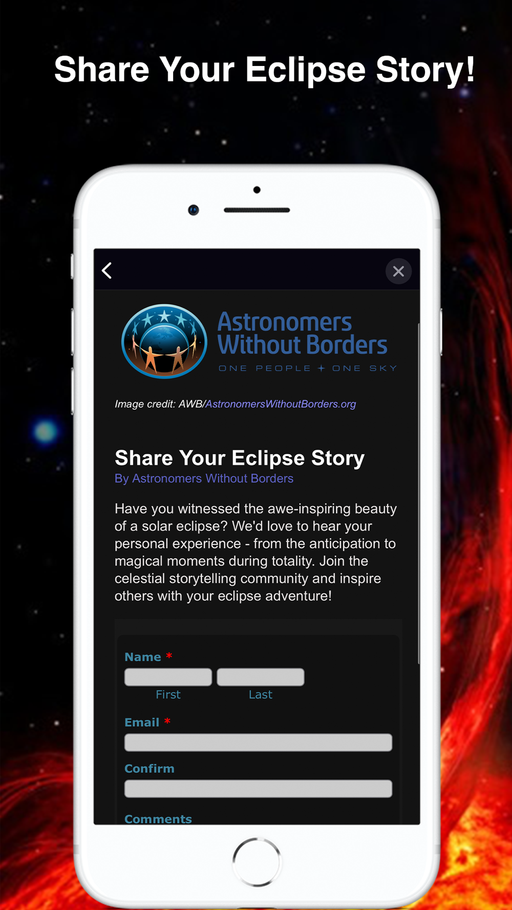+ Share Your Eclipse Story: Become part of the celestial storytelling community, where anticipation meets magic. Share your personal eclipse journey and inspire others with your unique experience.