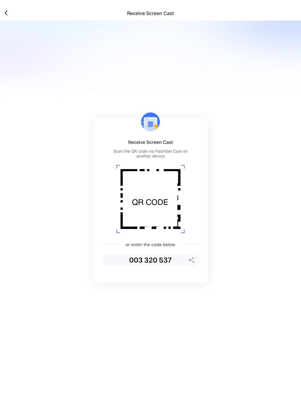 2. On the receiving device, choose to accept screen cast from other devices, and the QR code or code will be displayed on the screen.