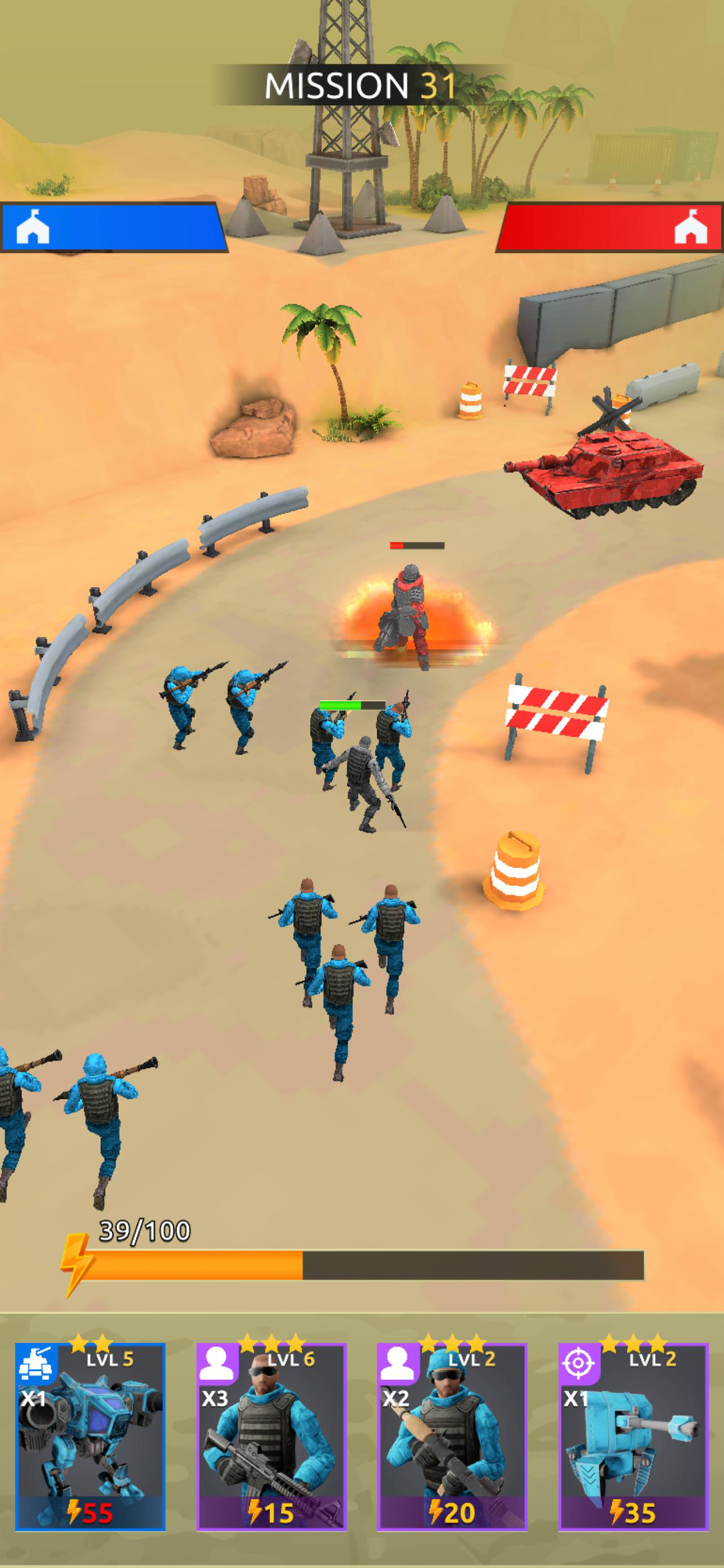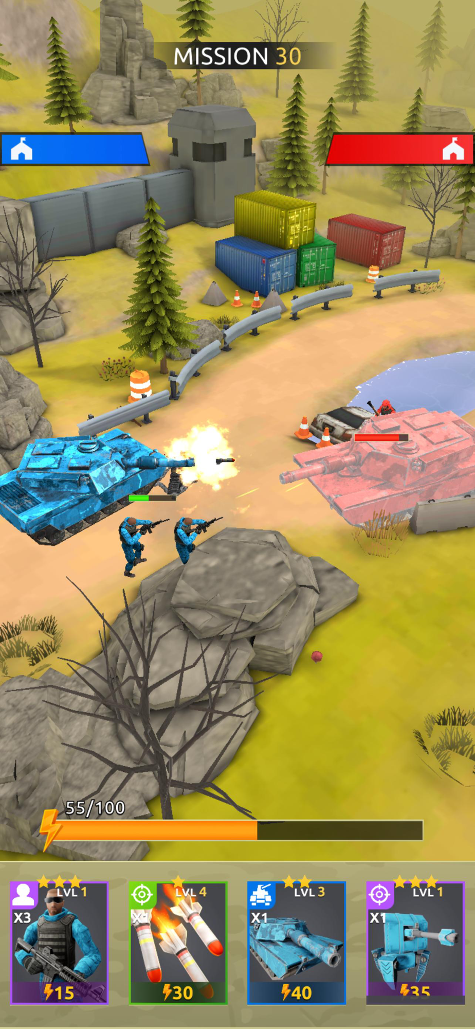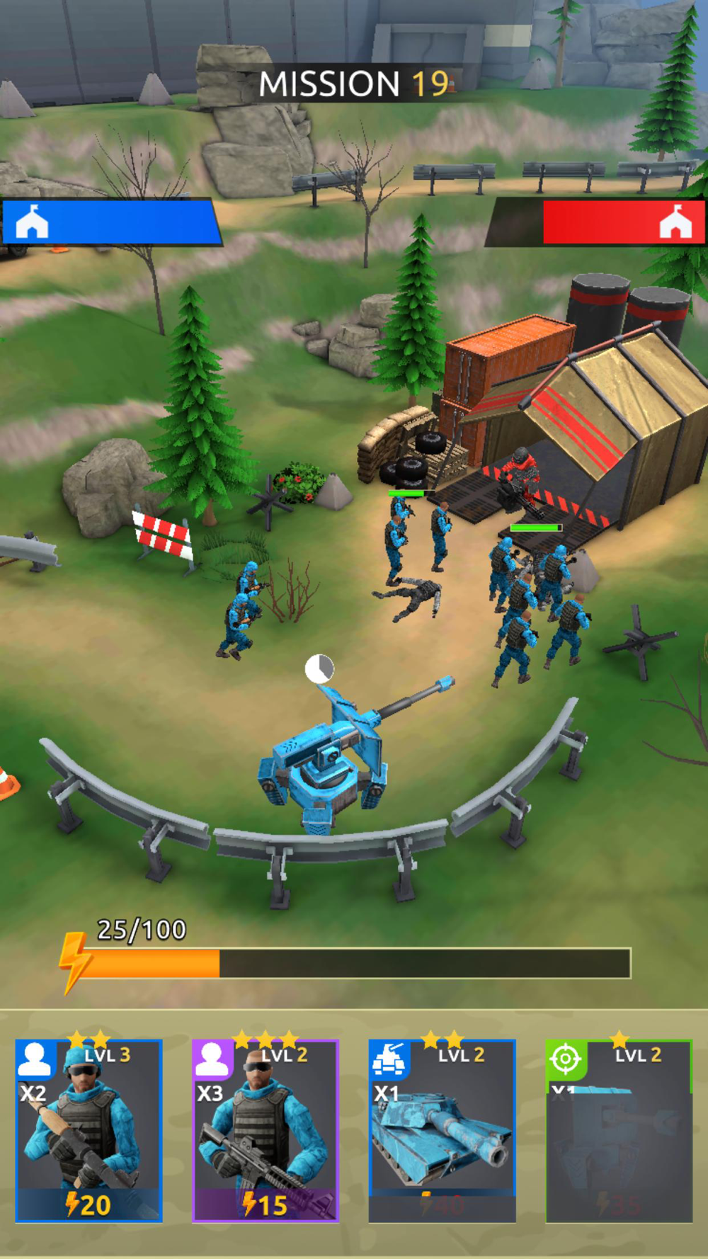 Dozens of unit types from which you have to assemble the perfect army. Infantry, tanks, mechs, armored giants and much more. Choose your favorite!