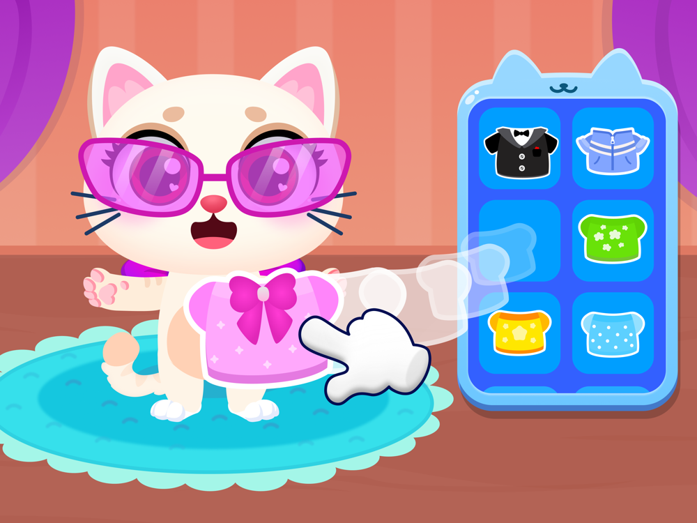 Don't miss the chance to dive into the world of tenderness and fun — put the kittens to bed, feed them delicious food, take care of their hygiene, treat their wounds and choose beautiful and colorful outfits for them. While playing, children will develop responsibility and understanding about how pets should be cared for.