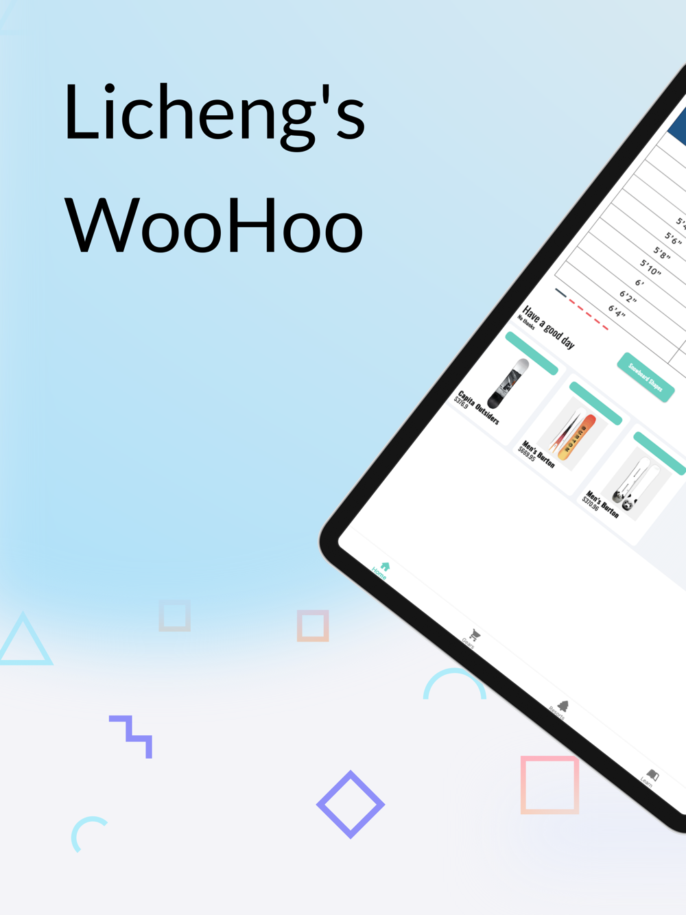 The Woohoo app contains everything you need to start snowboarding. Here, you can see the personalized snowboard dimensions, prices for all the gears you need, recommended snowboarding resorts, and snowboarding guide videos for different experience levels.