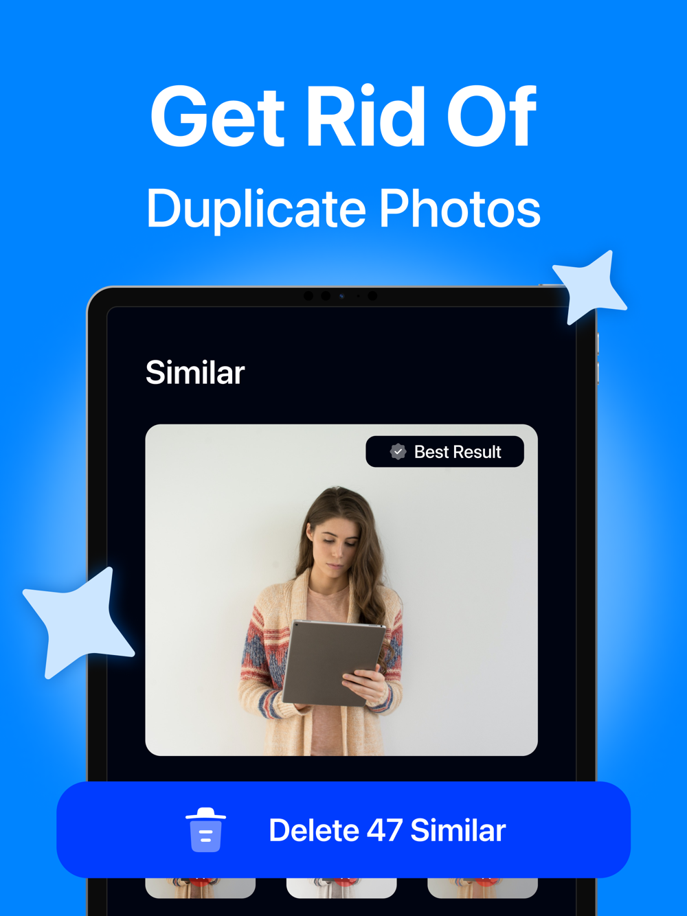 Scan your device within seconds to identify and eliminate junk and duplicate files.