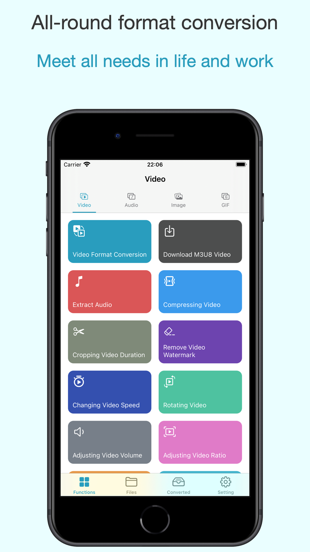 FormatX is an all-in-one format conversion tool that supports video, audio, and image format conversions, audio extraction, compression, cropping, merging, speed adjustment, rotation, aspect ratio adjustment, volume control, and more.