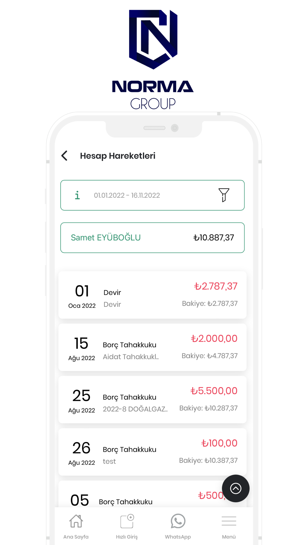 • Cari Hesap Hareketleri; bölümünüze yapılan tahakkukları , güncel borç durumunu ve geçmiş dönemde gerçekleşen ödemelerinizi görüntüleme,