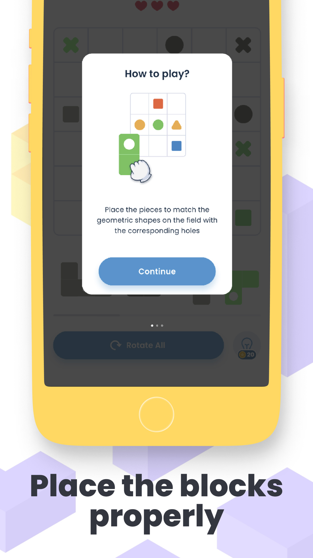 이 중독성 강한 퍼즐 챌린지의 흥미진진한 게임 플레이에 빠져보세요. 화면을 채울 완벽한 블록을 선택하는 것이 미션입니다. 모양은 각 블록의 이상적인 배치를 결정하기 위한 가이드 역할을 하며, 색상도 중요한 역할을 합니다. 블록의 일부 또는 전부를 회전해야 하는 경우, 게임 그리드 아래에 있는 버튼을 이용하면 됩니다. 속도 중심의 과제를 정복하고, 다양한 레벨을 진행하며, 테마별 이미지를 맞춰보세요.