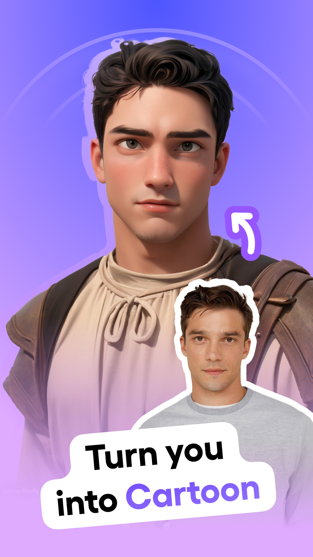 Transforming your moments into captivating works of art with Cartoon Yourself, a powerful cartoon photo editor that will give you joy in making 3D cartoon photo or create trendy cartoon face and avatar. Powered by AI, you can seamlessly turn your photo to cartoon, make it into vibrant and lively cartoon picture.