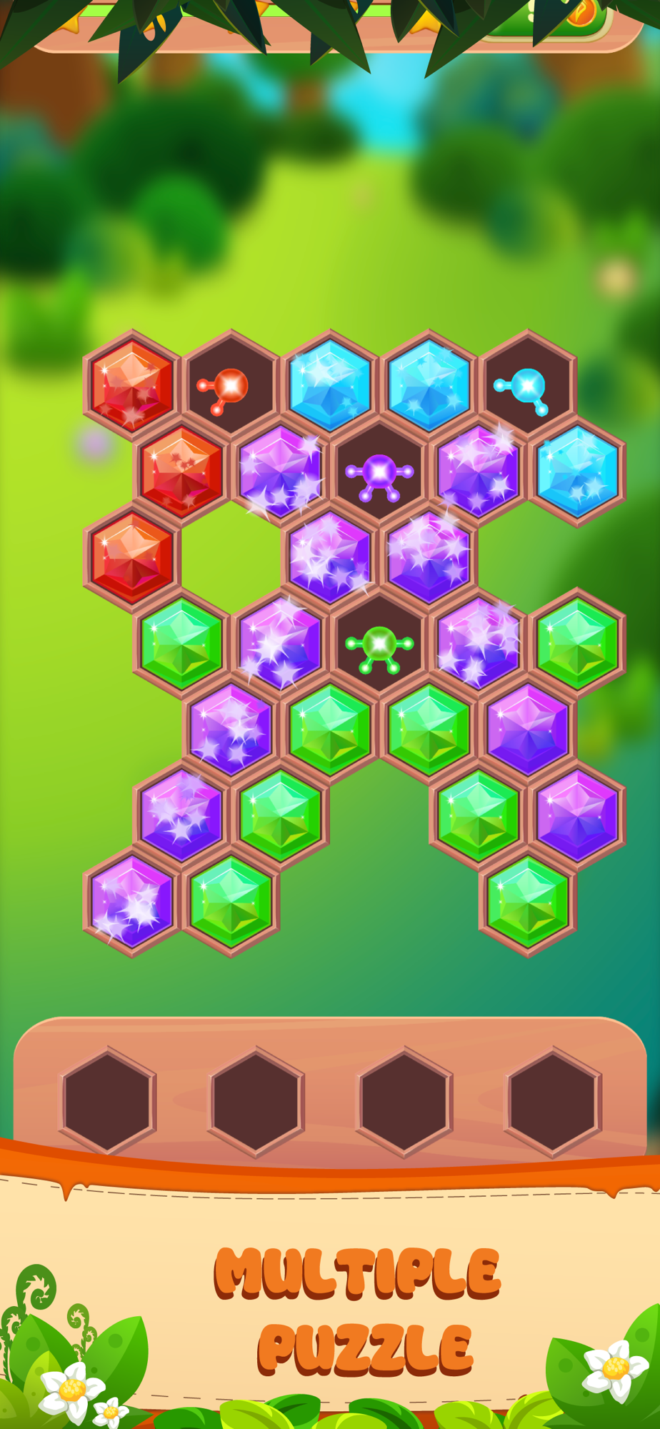 Feeling weary of the existing matching puzzle games? This shape-matching game is truly unique and offers the freshness you've been seeking. It will assist you in honing your tile-matching skills and ensuring that your leisure time is as enjoyable as possible. All you have to do is grasp the puzzle layout, and then drag and drop the hexagonal block into the correct position on the board. Consider all potential moves before releasing the block.