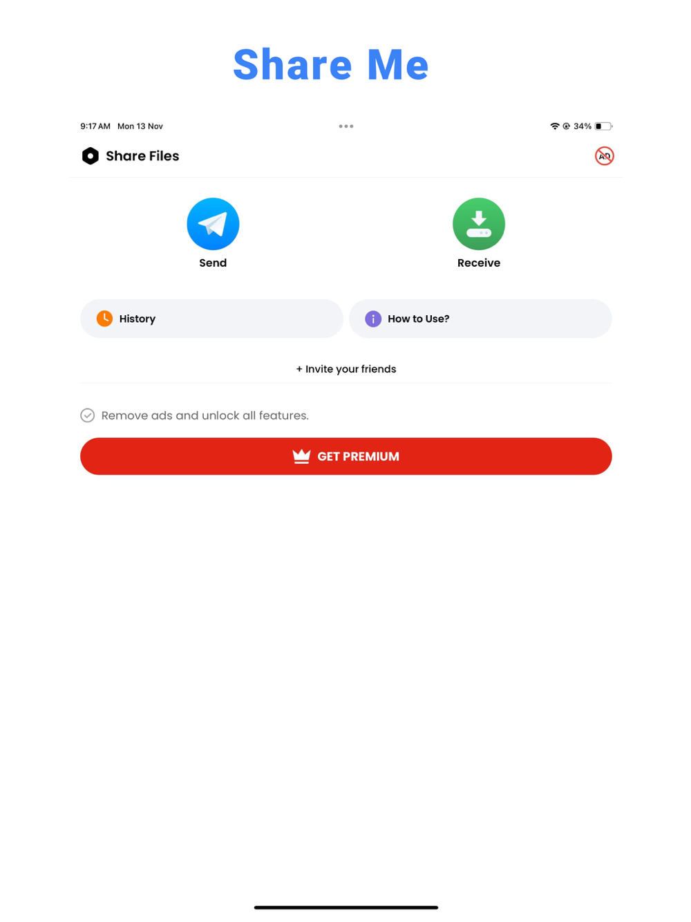 Share Me is a simple and fast way to share files, photos, videos, and more with your friends and family.