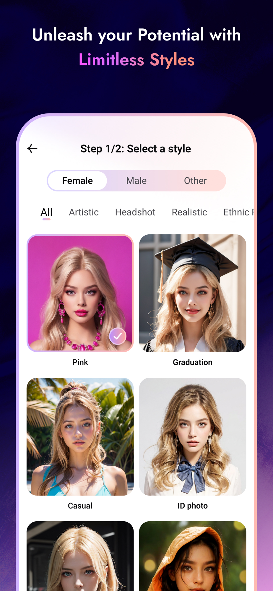 △ Pixpic is an AI-powered portrait generator app, not just a photo editor; it excels at creating highly realistic photographs. With Pixpic, you can generate professional headshots, a wide variety of portrait styles, ID photos, a sweet selfie or even images requiring elaborate makeup and wardrobe, which would otherwise involve significant expenses at a traditional photography studio.