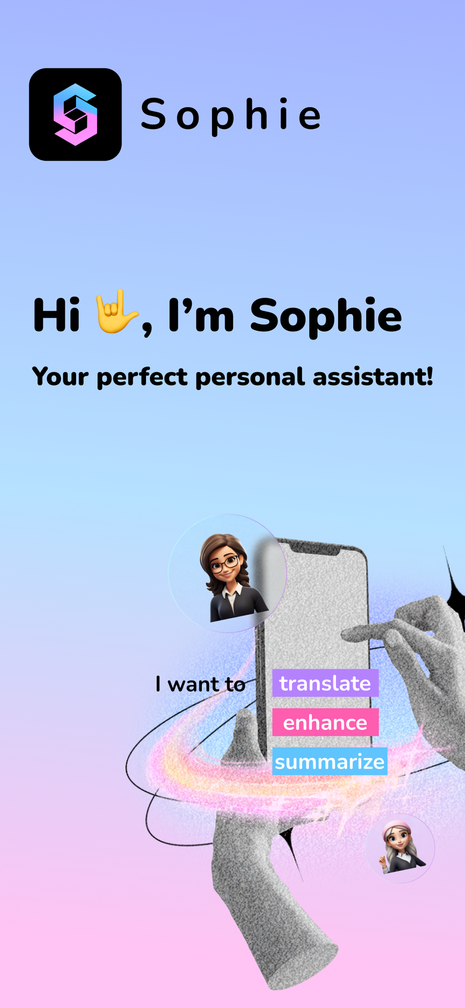 Unlock your potential with Sophie, an AI companion that brings a wealth of features right at your fingertips. Whether it’s exploring new horizons of knowledge, seamlessly translating languages, or refining your content to perfection, Sophie is here to elevate you. It’s more than just assistance, it’s about unleashing your capacity for productivity, solving challenges, and sparking innovation. Begin your journey today, for free!