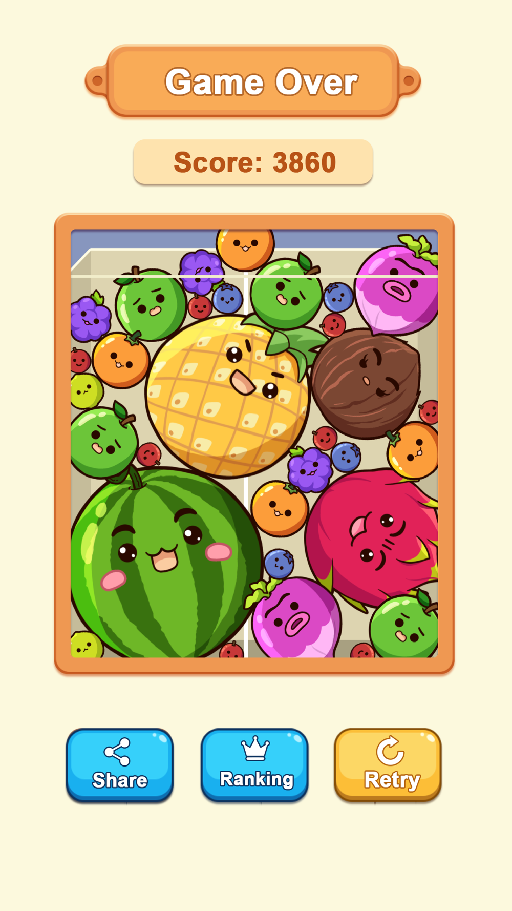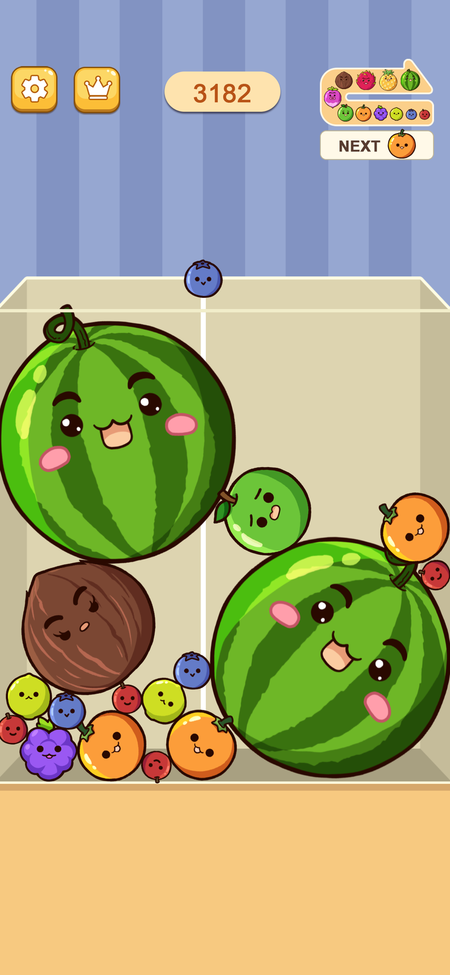 Challenge yourself, create 2 melons! Combine two smaller fruits to form a larger one and attempt to produce melon! Only 1% of players can do this!