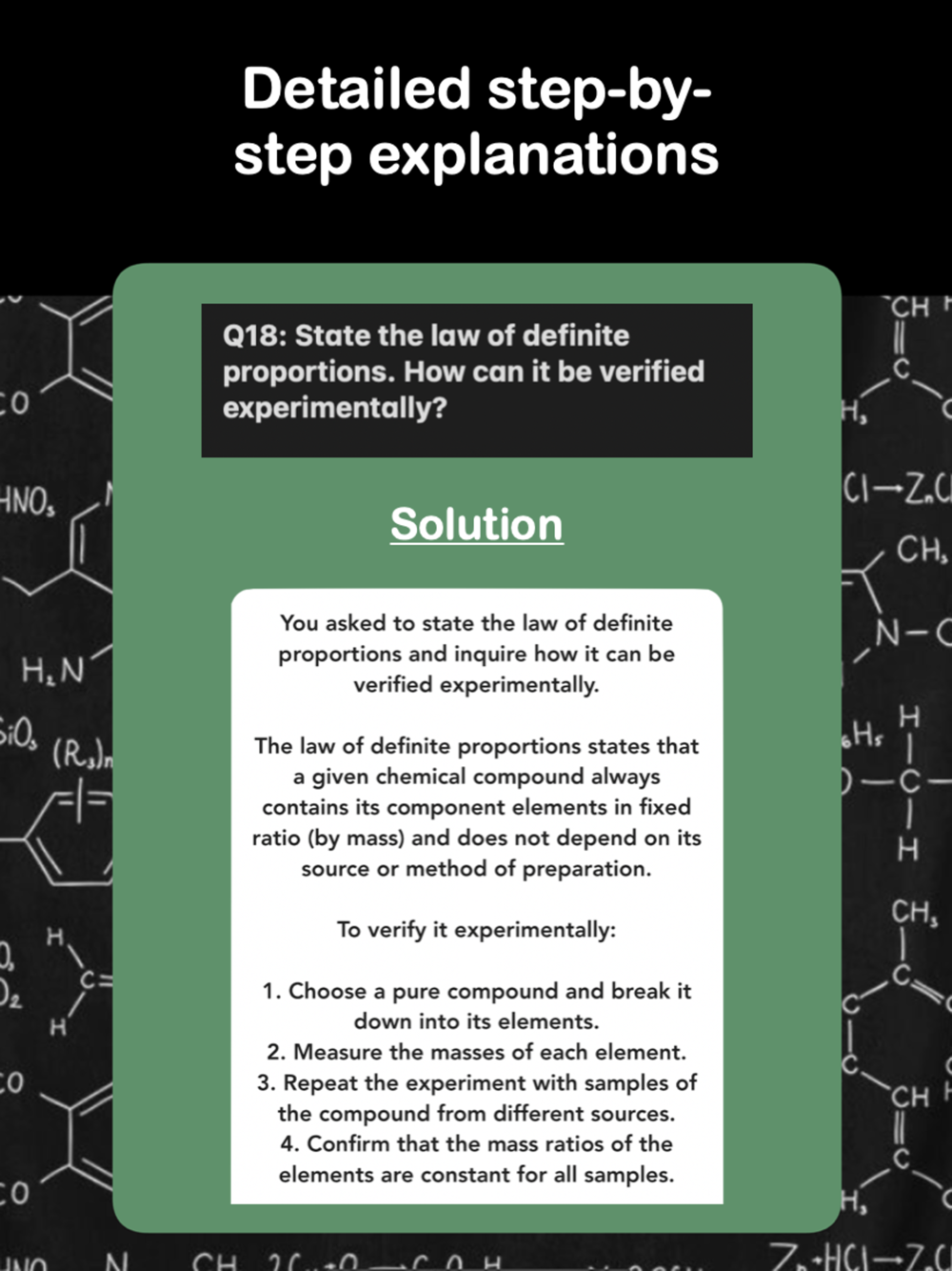 We got you covered for multiple choice, word, diagram, math, or any type of chemistry problem. Just upload or take a photo of your chemistry problems and Chem AI instantly recognizes the problem and helps you solve it with a thorough explanation.