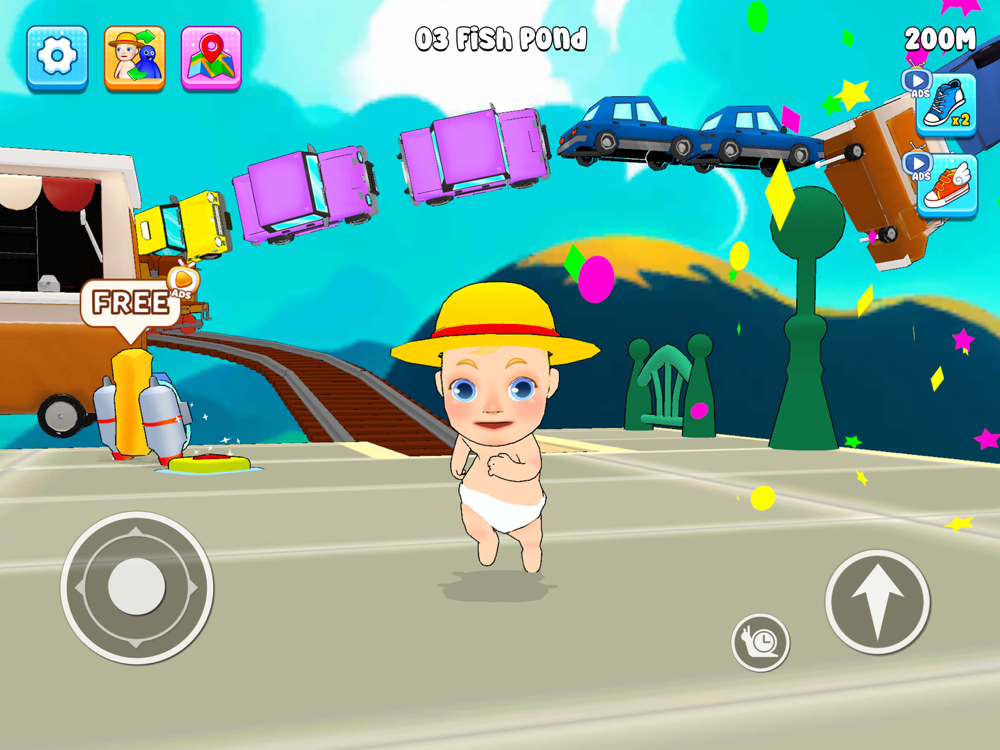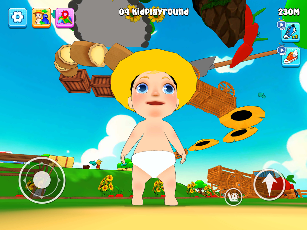 · Run and climb on flying platforms using joystick
