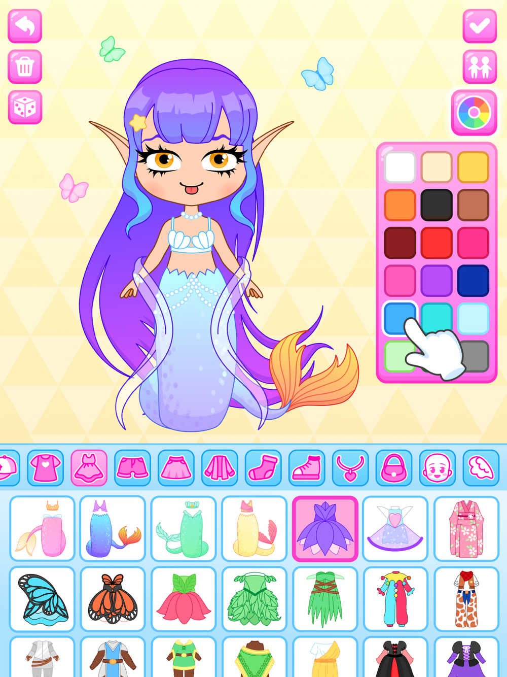 The creating process of Chibi dolls will always be pleasurable for your babies! Choose what your Chibi girl will be look like from the variety of sets and categories. Do the hair and pick up outfits with accessories. Create people and supernatural creatures (angels, devils, butterflies, werewolves, etc.). Define the facial expression and emotions of your character and make it the most lively!