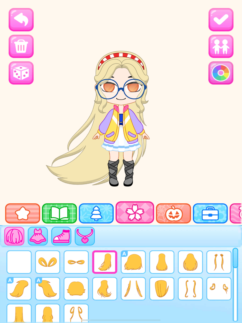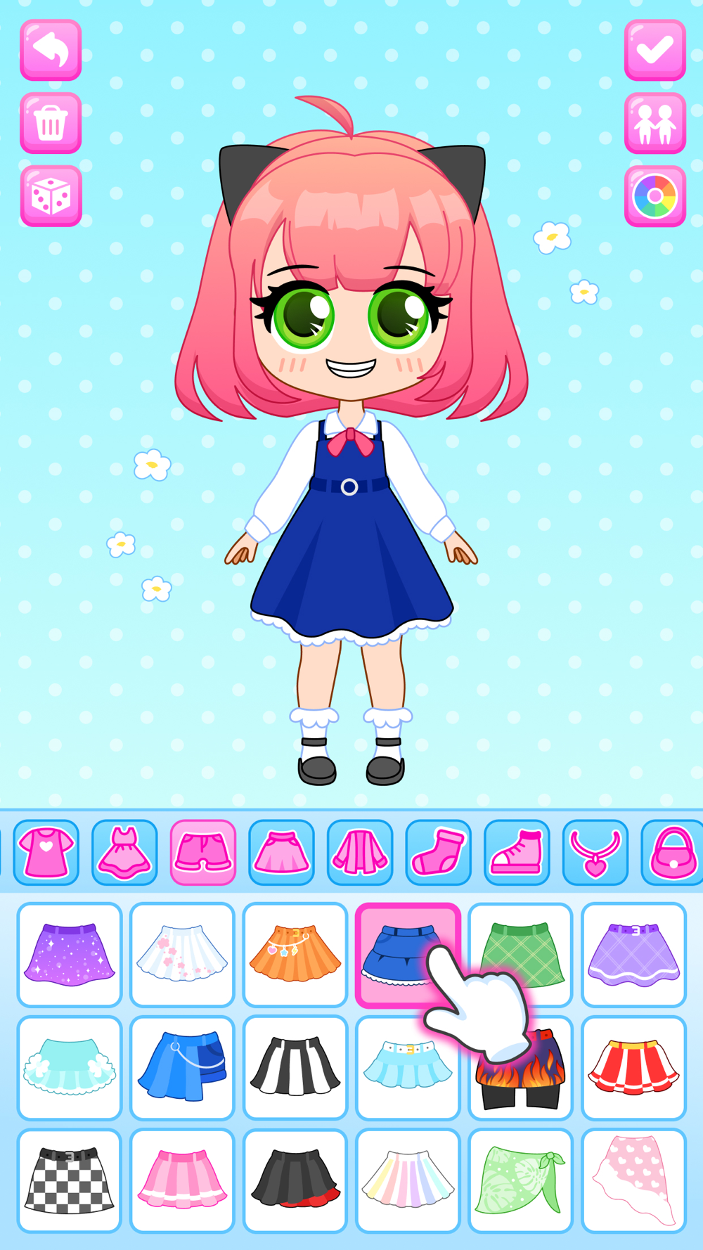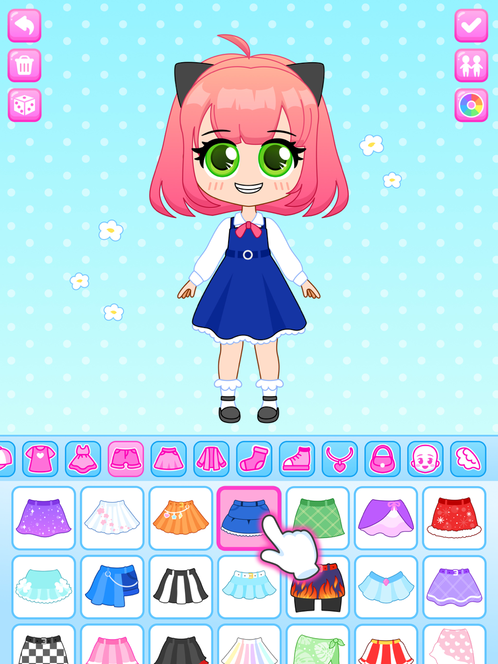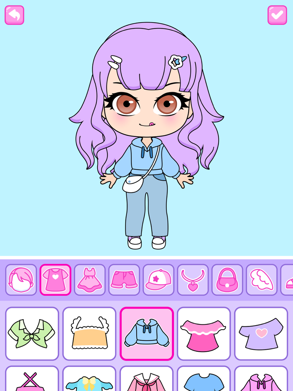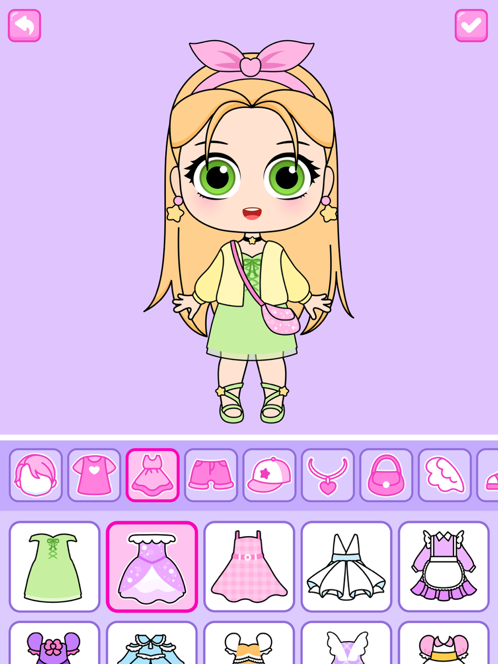Chibi doll maker is an entertaining app for kids in which your child will be able to create her own avatars, characters and dolls in anime style. We provide your baby with the huge amount of content for creating super Chibi girls: dresses, hairdos, accessories, face parts and emotions. Make characters from favourite cartoons, movies and anime. Or fantasize a little and make up your own catchy images.