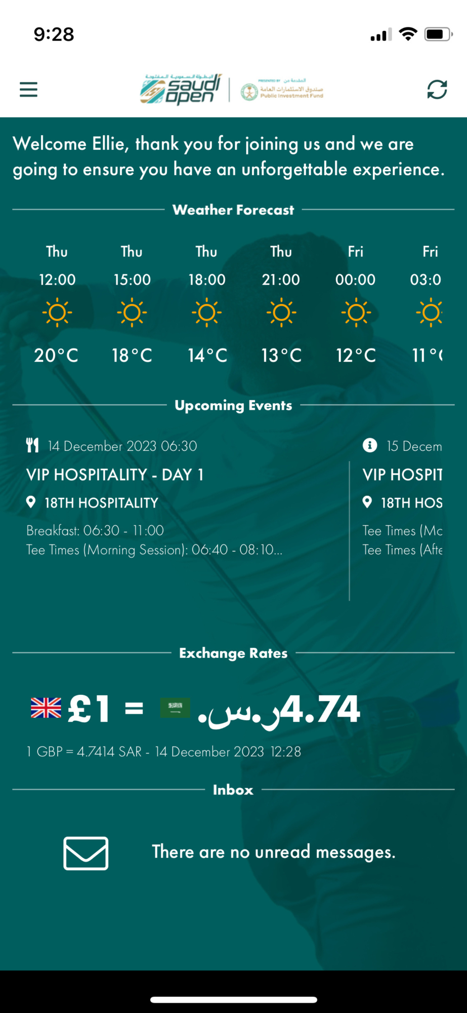The Golf Saudi Event App is designed for guests attending Golf Saudi events.
