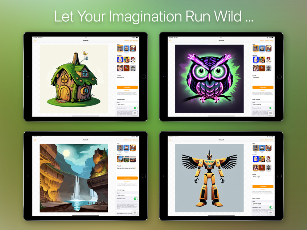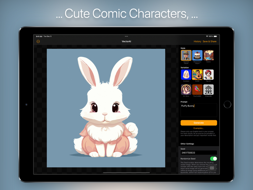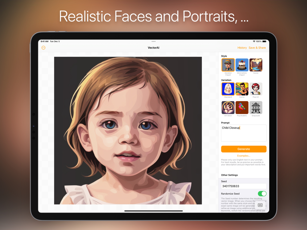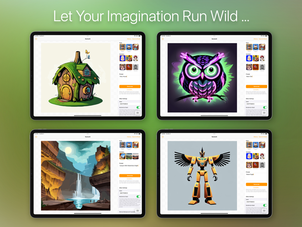 VectorAI is the first and only "On-Device" vector graphic creator for Mac, iPhone, and iPad. Download the desired vector styles (ClipArt, Minimalist Clipart, Scenes) directly from the app, and then the entire image creation takes place directly on the device. All data stays on your Mac, iPhone, or iPad and is processed exclusively locally – not transmitted to any external server.