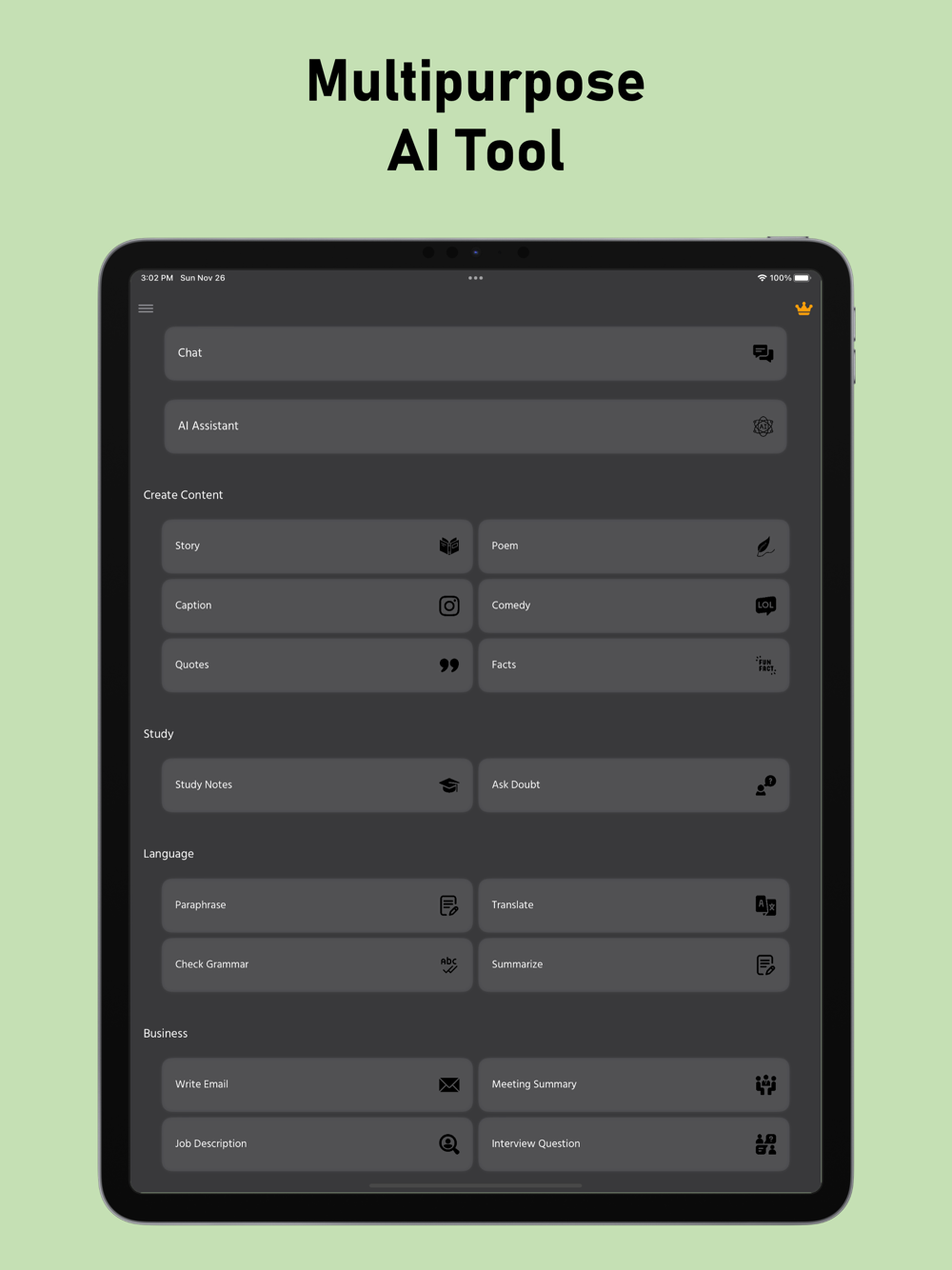 Do you want to generate content, want to get your doubts cleared or just want to have conversational chat? No worries, your multipurpose AI tool is here. You can not only chat with it but ask it to generate any content like story, poem, song. You can ask it to help with your homework, project or create a thesis. That's not it!. You can use it to get entertained, learn something new or get help on your current work.