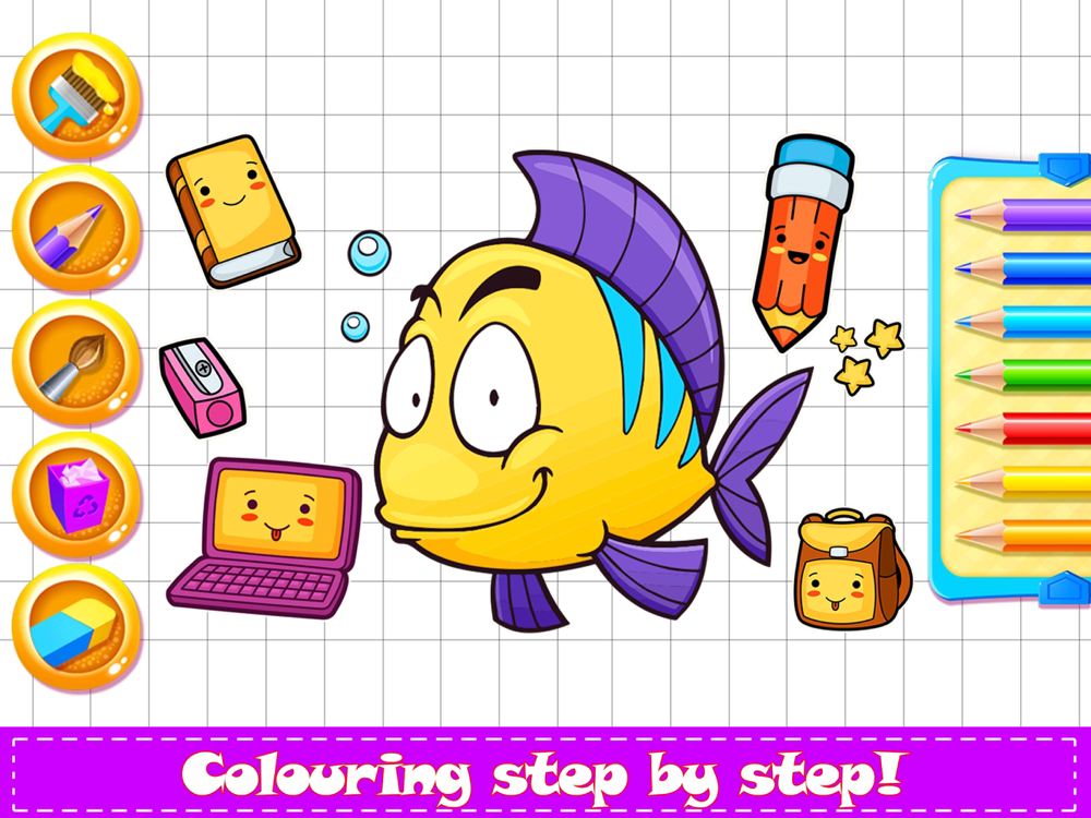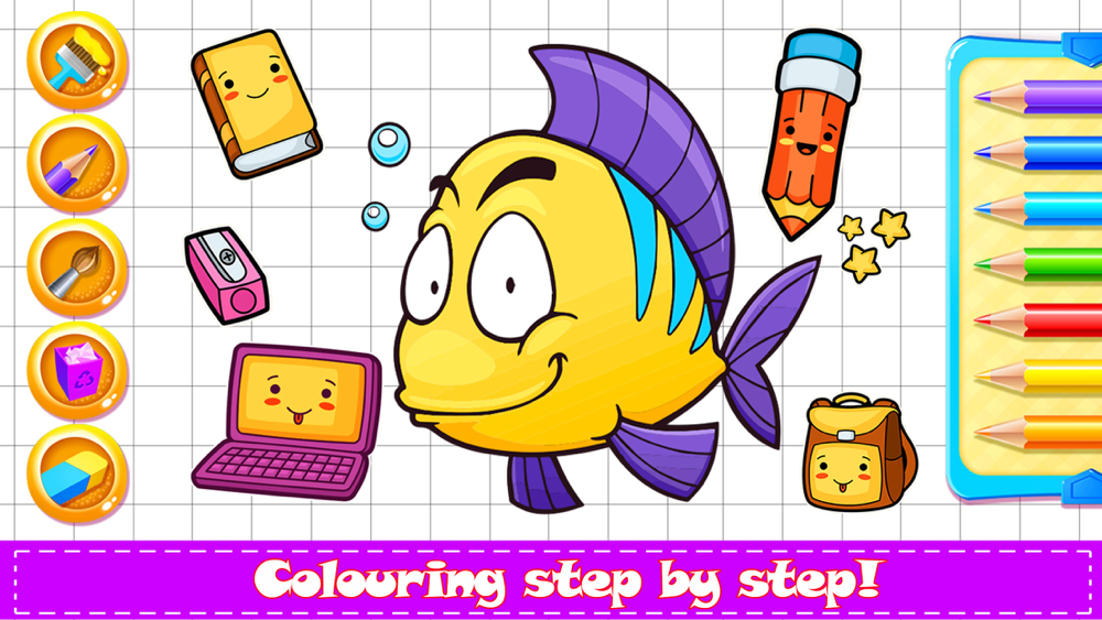 Improve your child's communication skills with simple and fun kids's writing activities includes read up, make it fun, create writing worksheets, write letters, encourage journalling, connect interests, story prompts, model it on daily routine and praise their work.There are plenty of colourful interested educational activities for little ones entertainment. This baby game has easy and user friendly interface to develop kids observation and attention more powerful. Art draw class coloring games for kids 2-6 years of ages. Adorable stickers and pencils, flash color effects, princess doll outfits and jewellery, draw in painting contest or at new year , Christmas or wedding cards or to give birthday surprise to your friends! Download Now for FREE, Offline game!