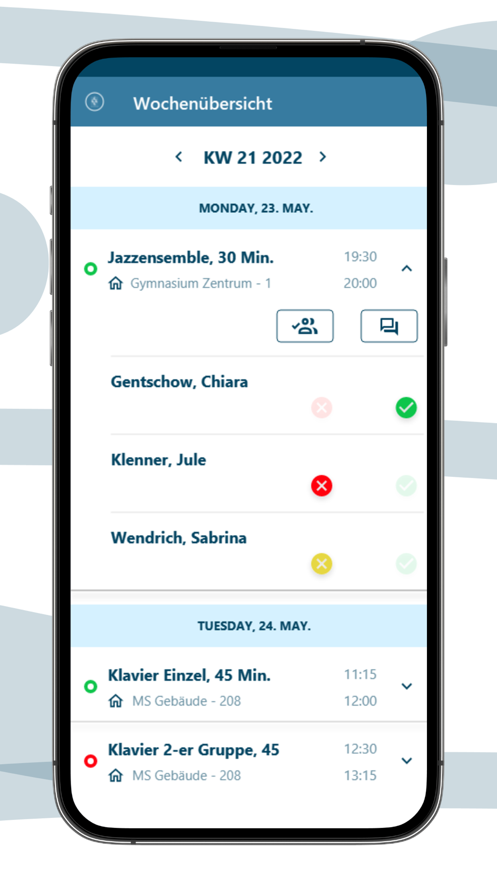 Die App bietet unter anderem einen datenschutzkonformen Chat zwischen Schülern, Eltern, Lehrkräften und der Musikschule.