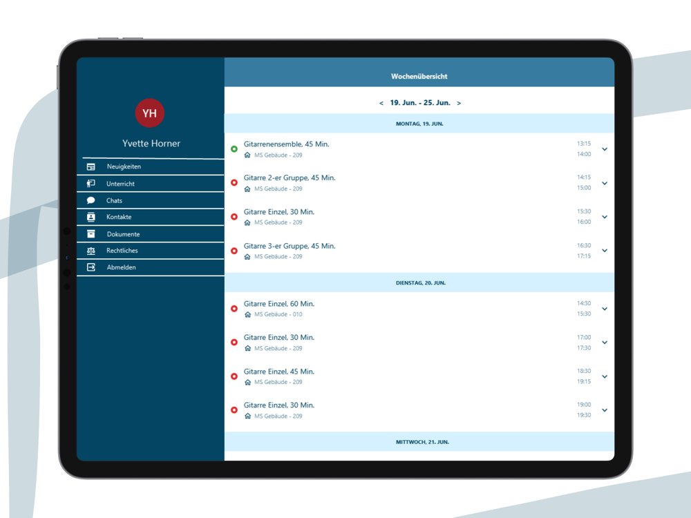 Zusätzlich erhalten Sie zahlreiche Informationen über die Musikschule und können auch direkt mit der Musikschule kommunizieren.