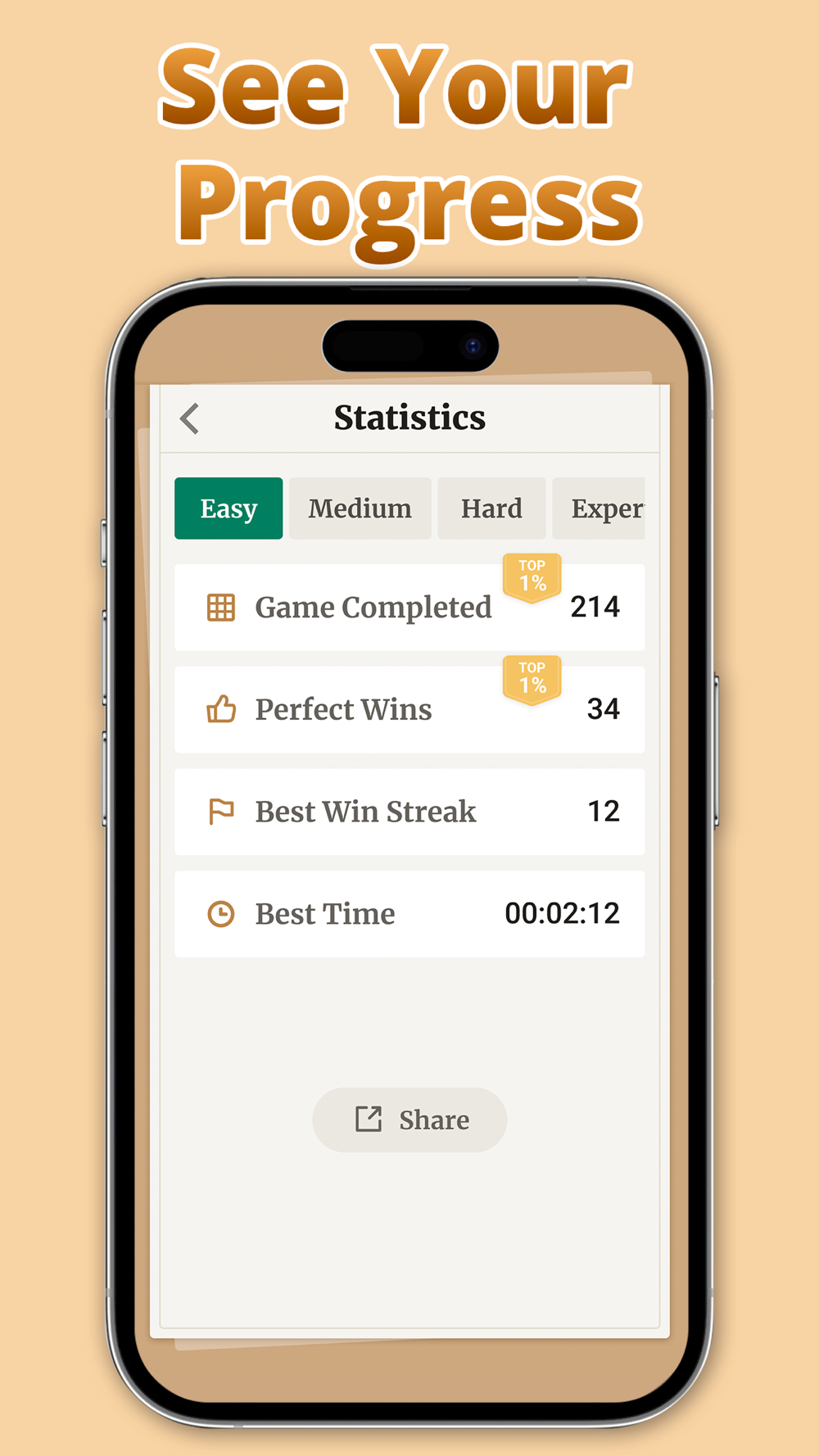 • Various Difficulties: Choose from five levels – Easy, Medium, Difficult, and Expert – to find your perfect game.